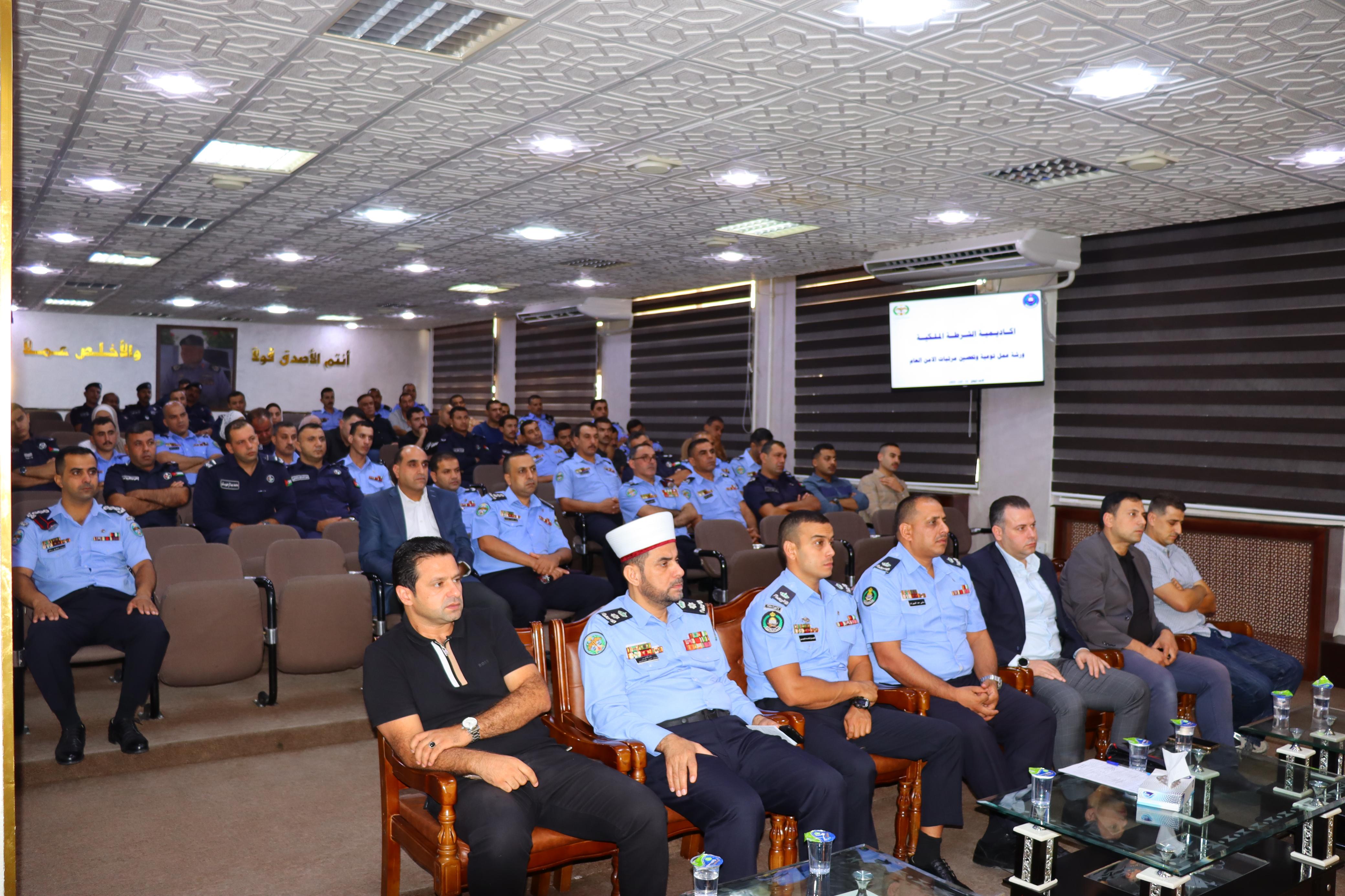 وتأتي هذه الورشة إستمرارًا لسلسلة ورشات العمل التي أطلقتها مديرية الأمن العام في أكاديمية الشرطة الملكية تنفيذًا لإستراتيجية مديرية الأمن العام وتوجيهات عطوفة مدير الأمن العام لتعزيز العمل وتكريس مفهوم الأمن الشامل والسلم المجتمعي