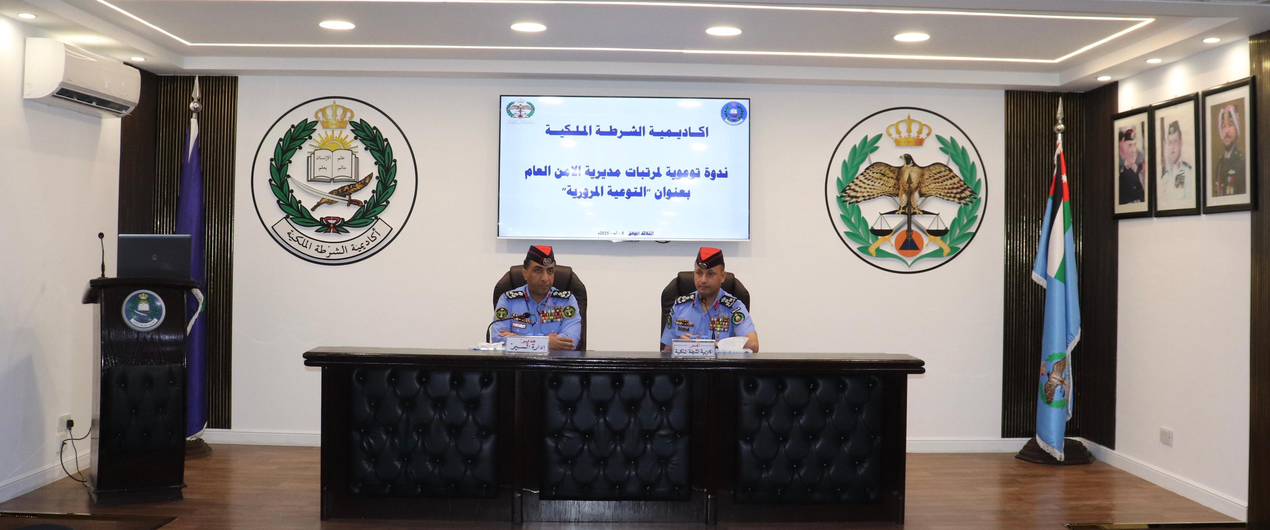 عقدت أكاديمية الشرطة الملكية اليوم ورشة عمل بعنوان "التوعية المرورية" والتي شارك بها عدد من منتسبي مديرية الأمن العام