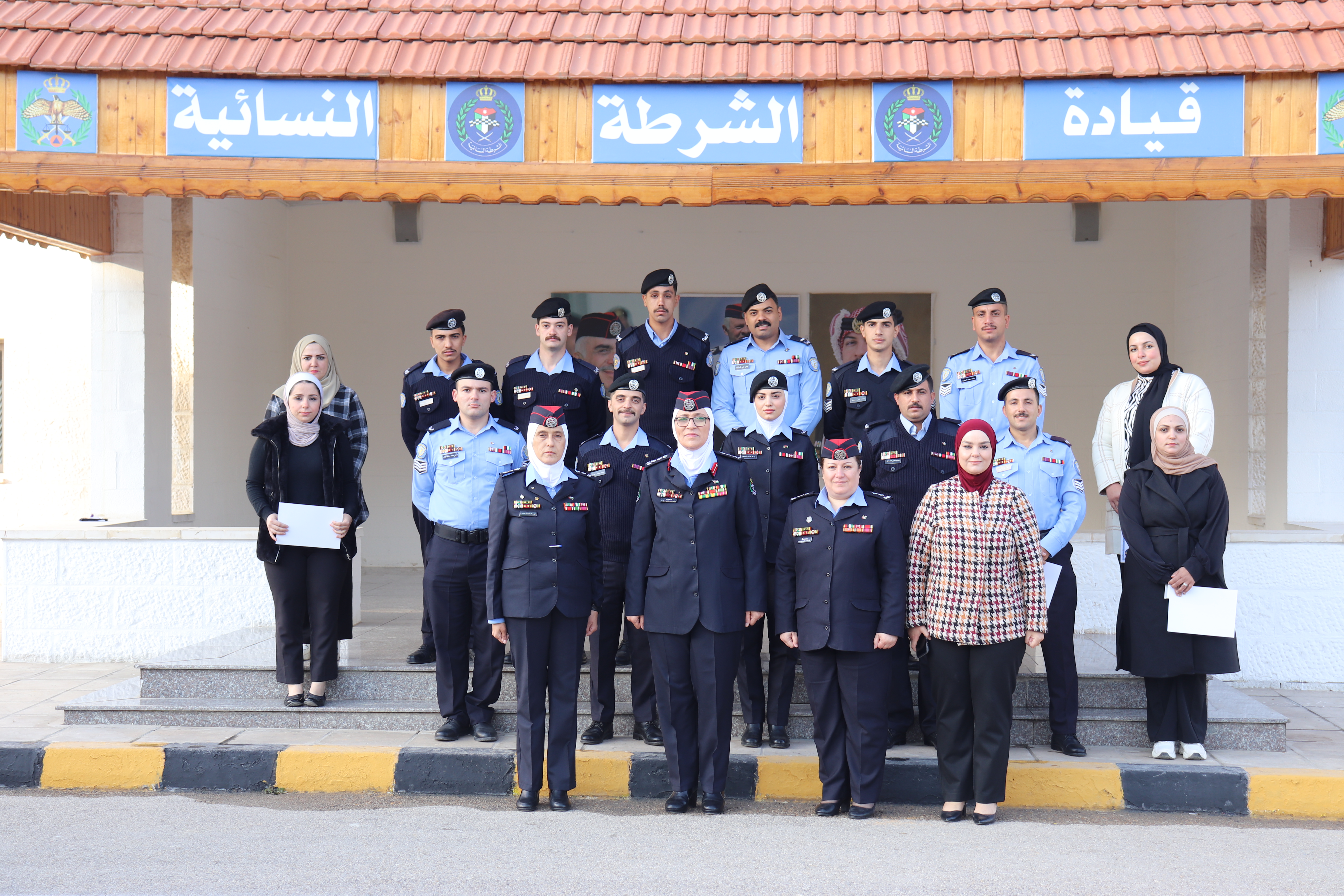 بحضور قائد الشرطة النسائية العقيد الدكتور دلال "محمد غازي" صوالحة ورئيس معهد الأميرة بسمة لتدريب الشرطة النسائية المقدم عريب "محمد جمال" حمدان