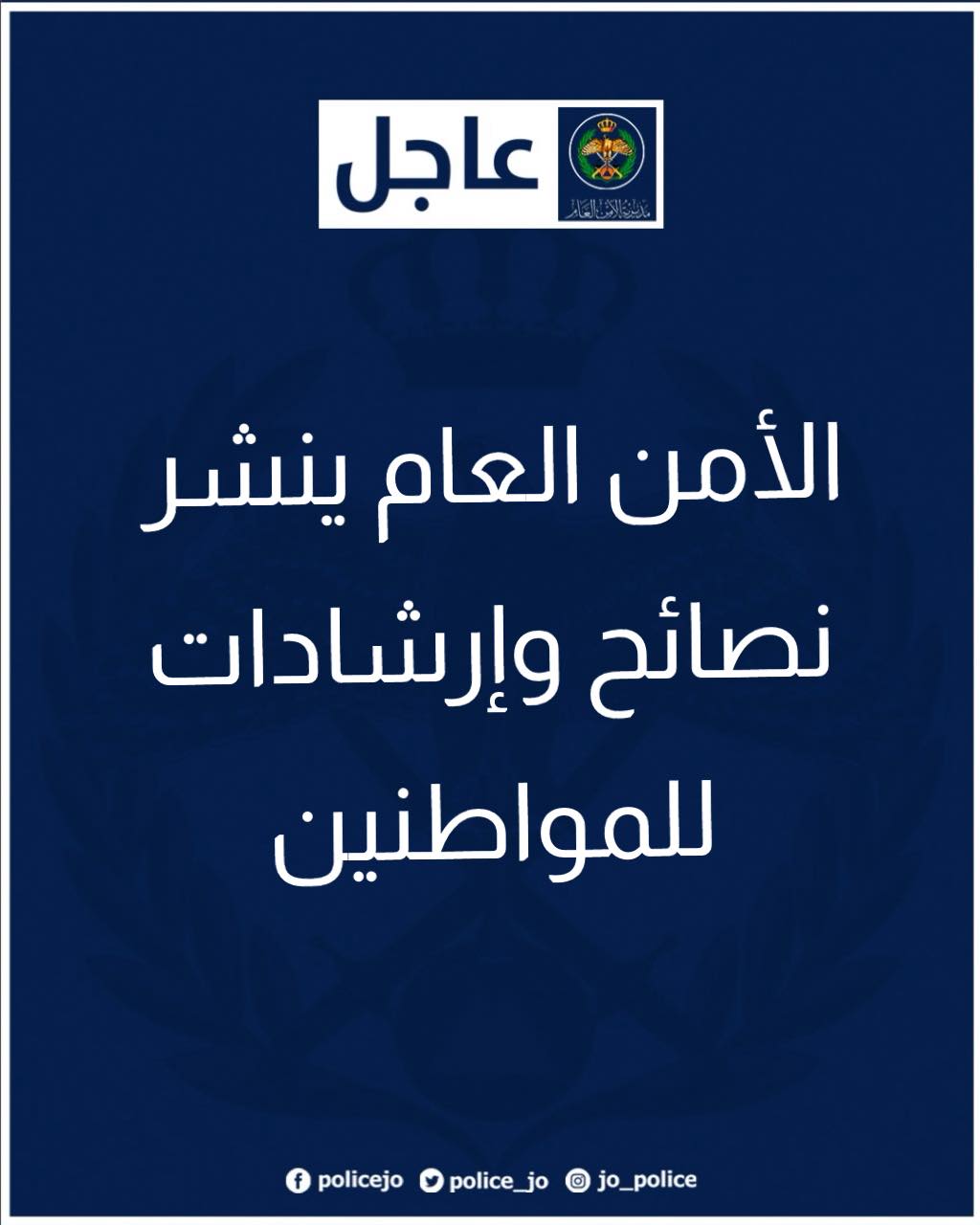 وأكدت مديرية الأمن العام أن الالتزام بهذه الإرشادات يسهم في حماية الأرواح والممتلكات، ويمكّن الأجهزة المختصة من أداء واجبها بكفاءة وسرعة.