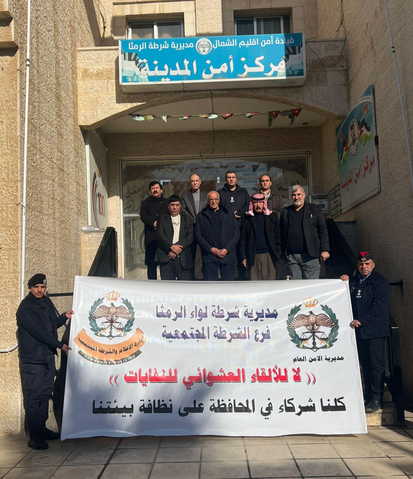 اجتمعت المجالس المحلية في مختلف مديريات الشرطة بمحافظات المملكة، دعماً للحملة الوطنية للحد من الإلقاء العشوائي للنفايات، وذلك بالتشاركية مع الشرطة المجتمعية والإدارة الملكية لحماية البيئة.