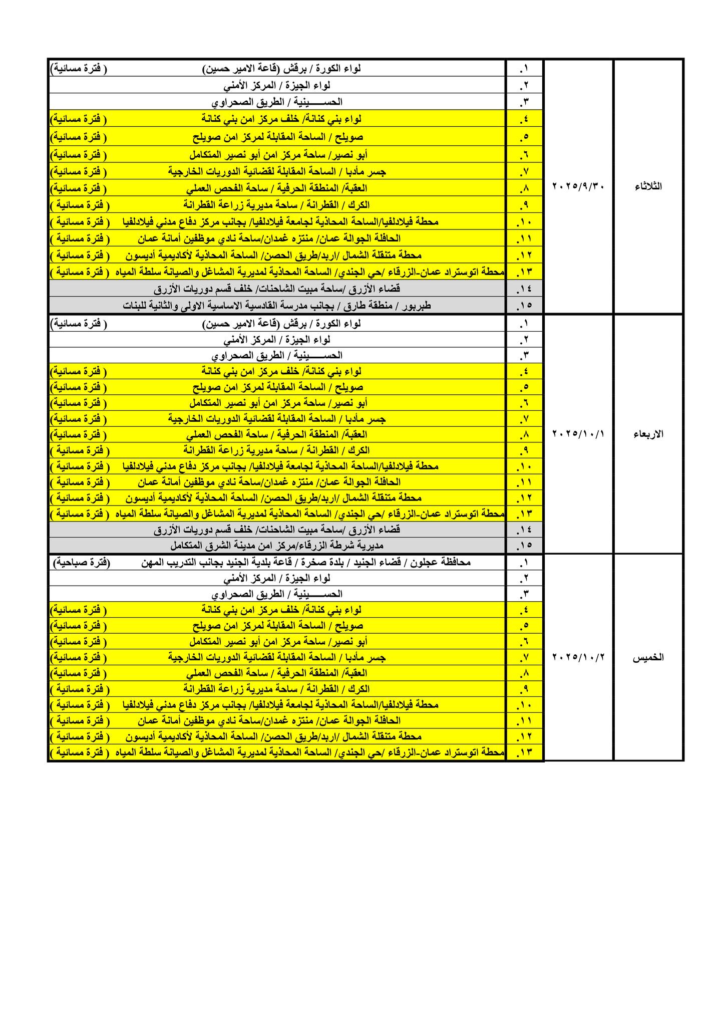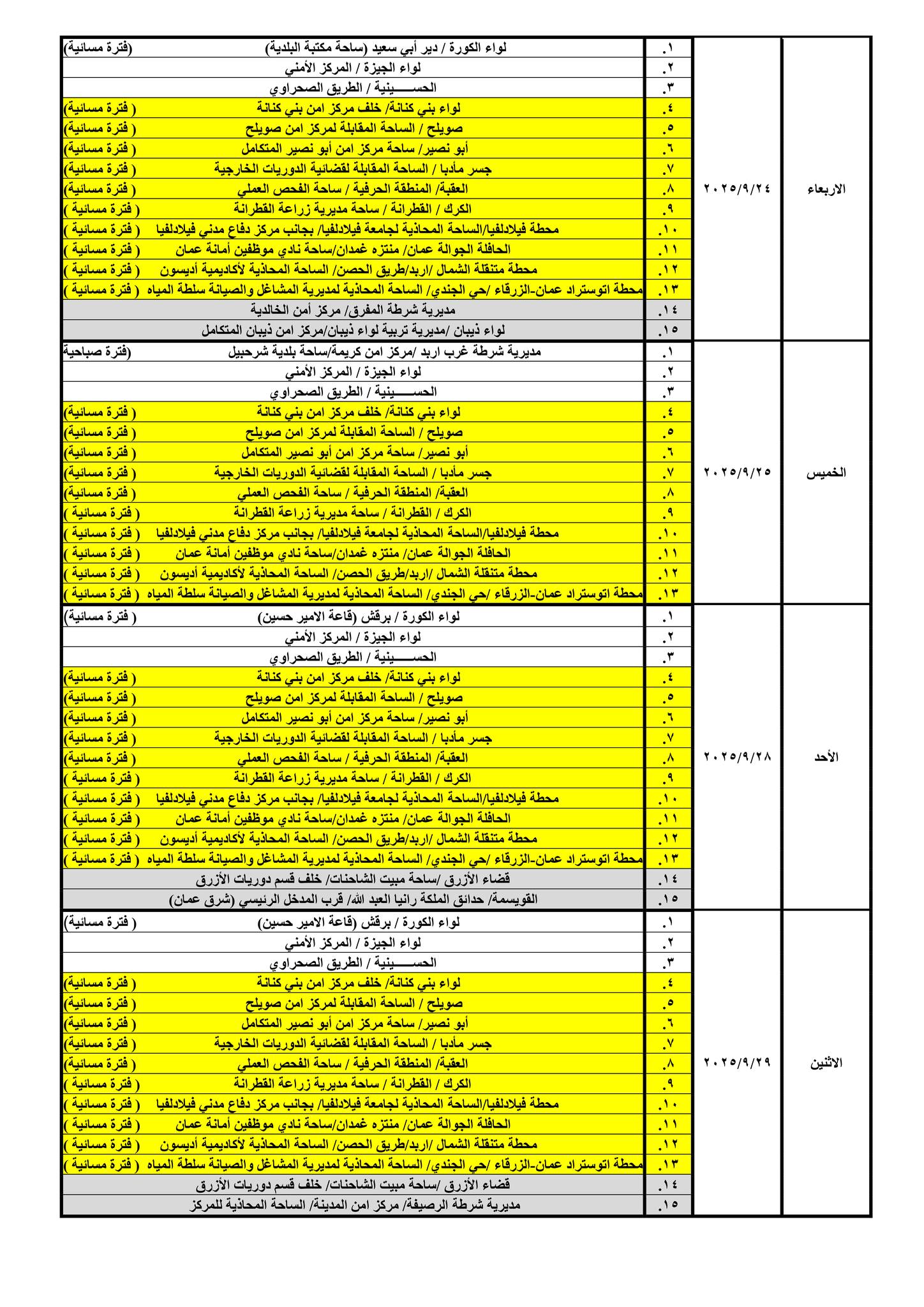 9- محطة اتوستراد عمان-الزرقاء /حي الجندي/ الساحة المحاذية لمديرية المشاغل والصيانة سلطة المياه.