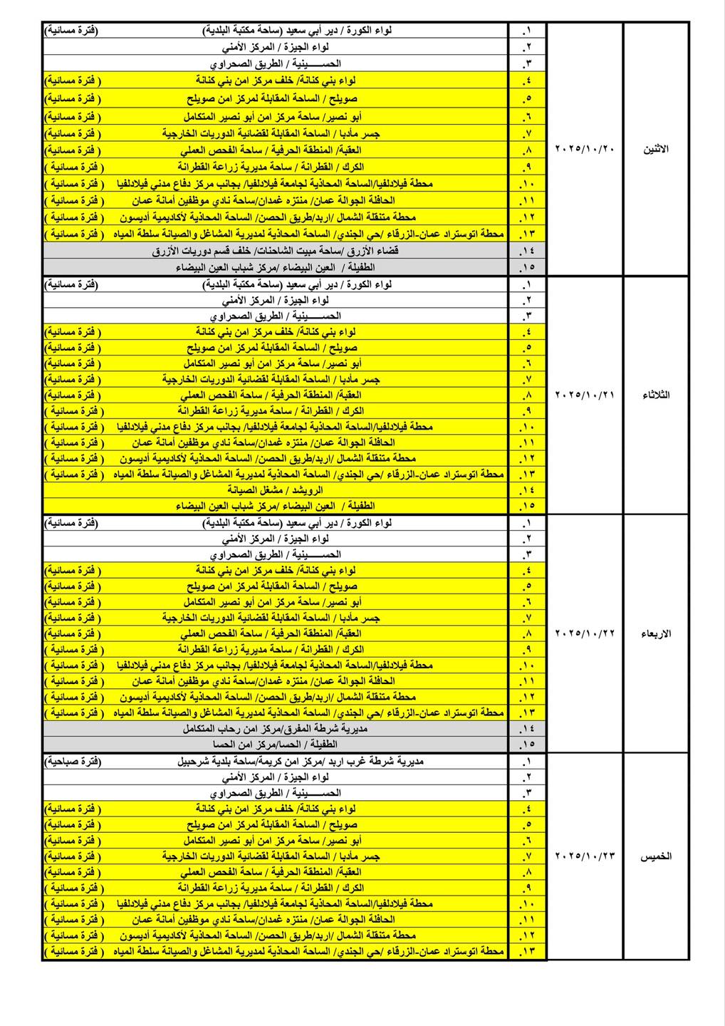 9- محطة اتوستراد عمان-الزرقاء /حي الجندي/ الساحة المحاذية لمديرية المشاغل والصيانة سلطة المياه.