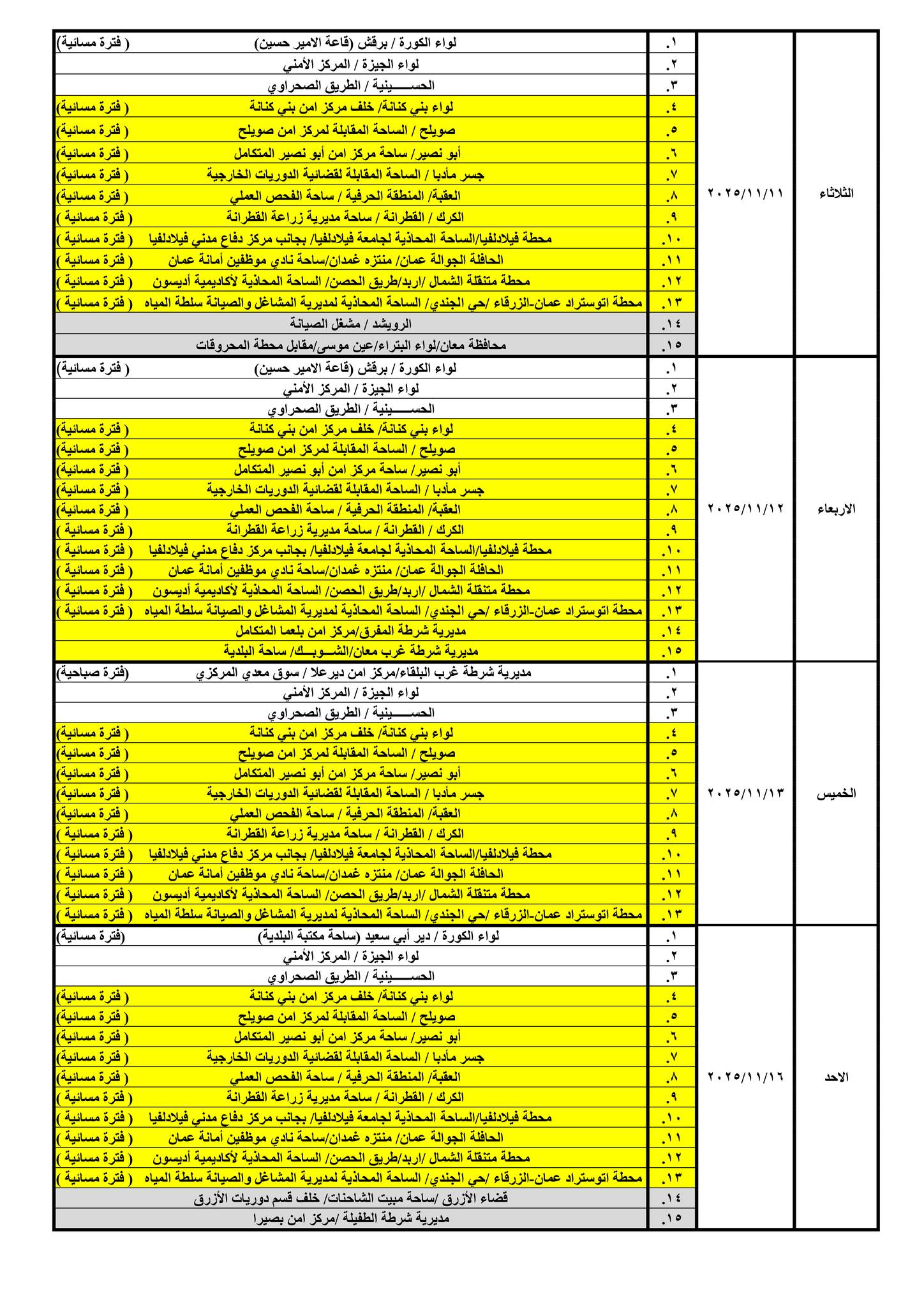 9- محطة اتوستراد عمان-الزرقاء /حي الجندي/ الساحة المحاذية لمديرية المشاغل والصيانة سلطة المياه.