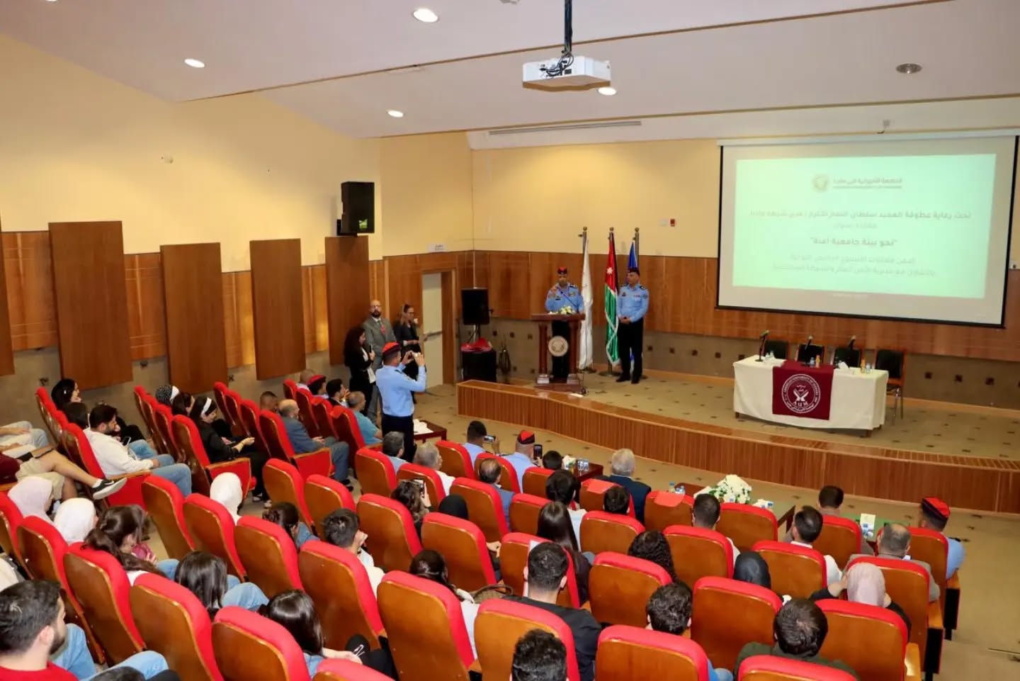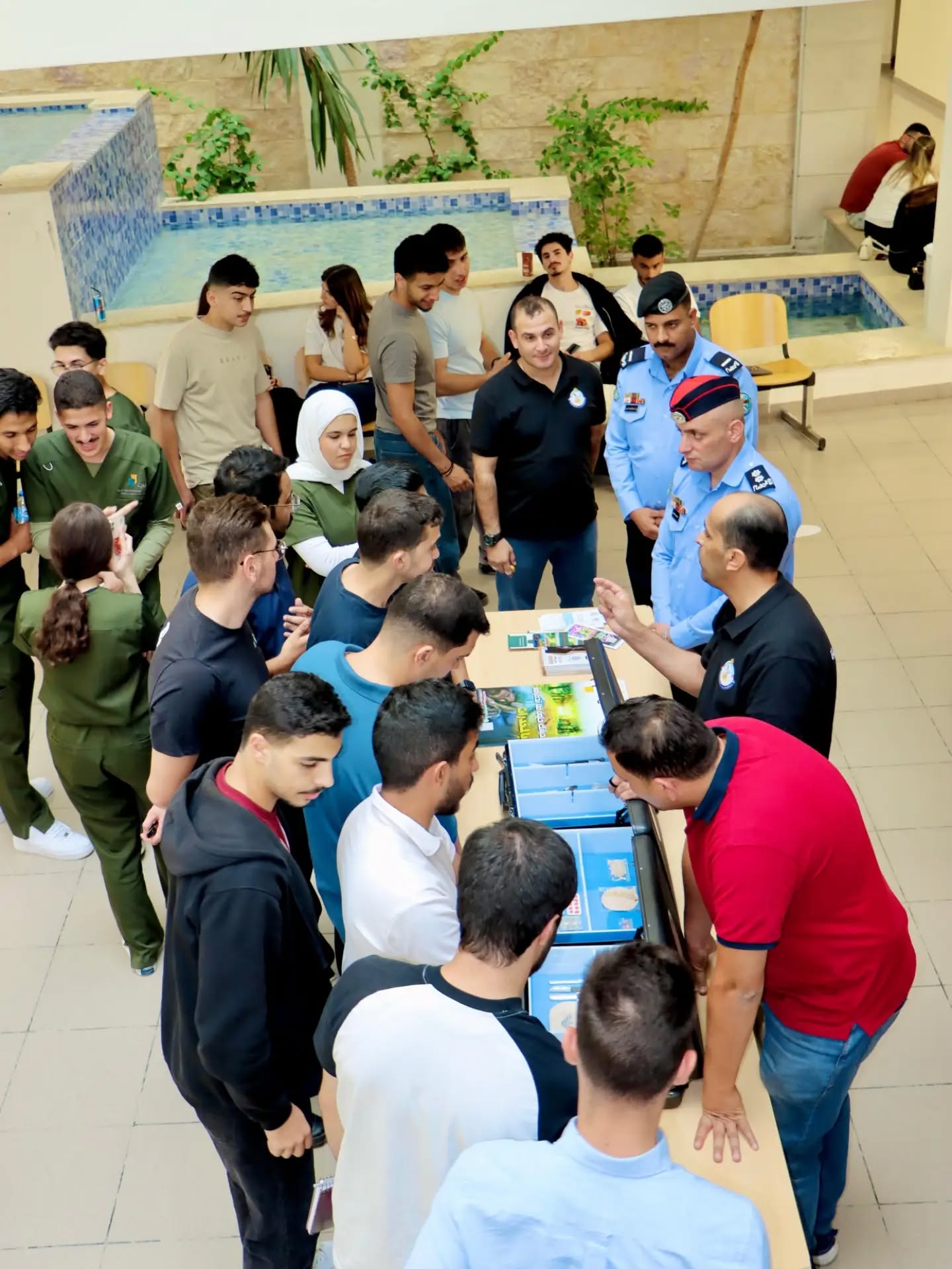 جانب من فعاليات الأسبوع التوعوي الجامعي التي نُفذت خلال يومي الثلاثاء والأربعاء، في عدد من الجامعات شملت العلوم والتكنولوجيا، الحسين بن طلال، الجامعة الأمريكية، آل البيت، الشرق الأوسط، الطفيلة التقنية، الزيتونة، عمان العربية، الجامعة الألمانية، وكليتي رفيدة للتمريض والمهن الطبية المساندة، والزرقاء الجامعية.