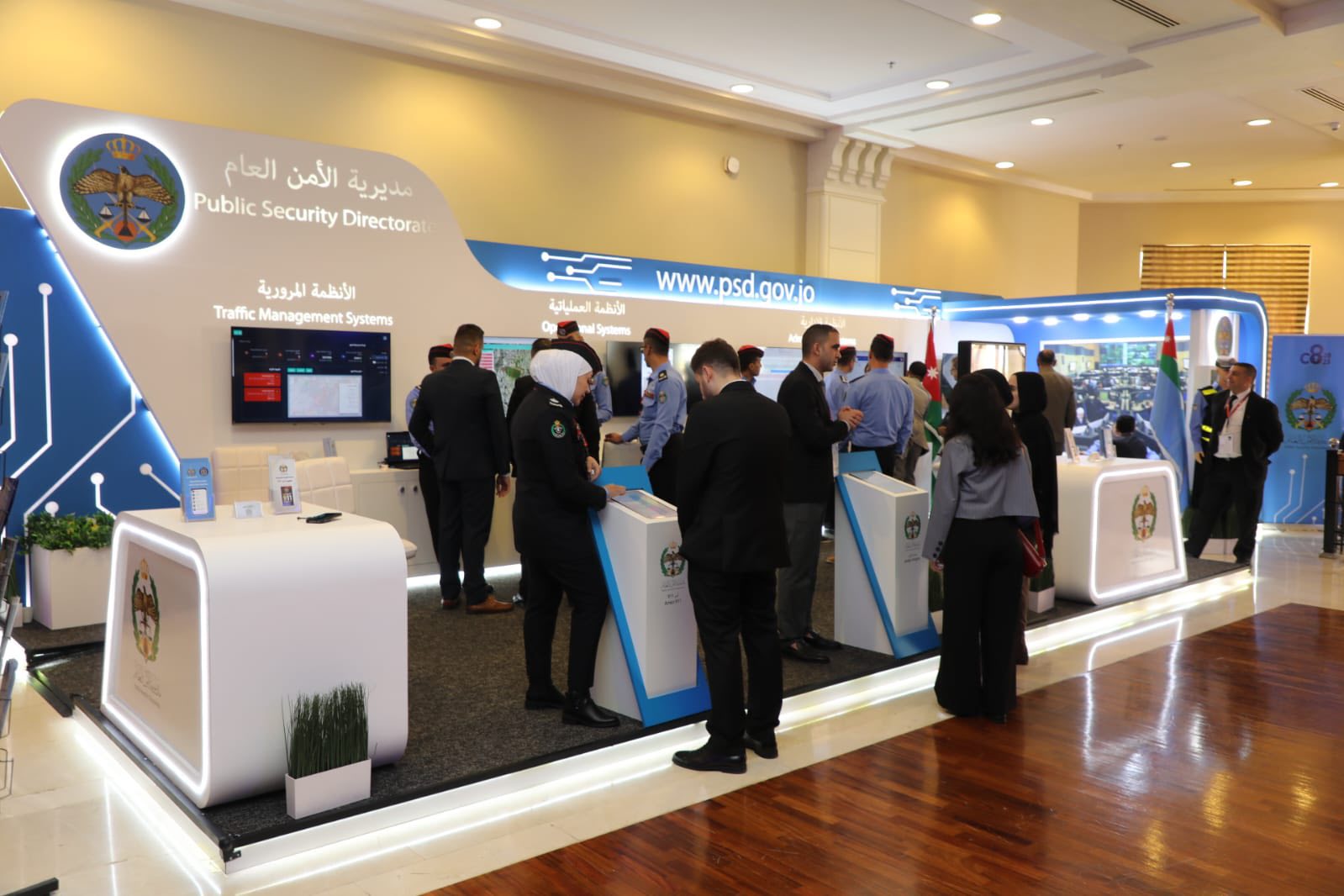 جانب من مشاركة مديرية الأمن العام في مؤتمر ومعرض التقدم والابتكار والتكنولوجيا في الأمن السيبراني (C8/2025)، والذي انطلقت فعالياته، يوم أمس، تحت رعاية سمو ولي العهد الأمير الحسين بن عبدالله المعظم، في مركز الملك حسين بن طلال للمؤتمرات - البحر الميت.