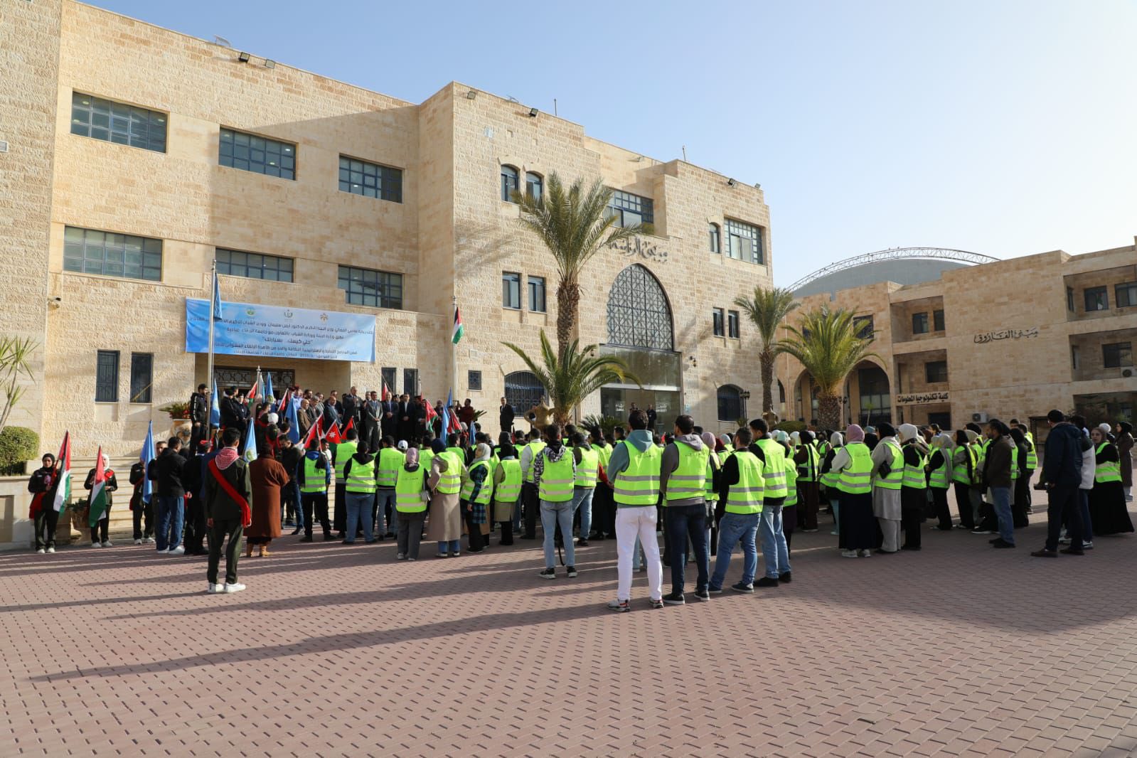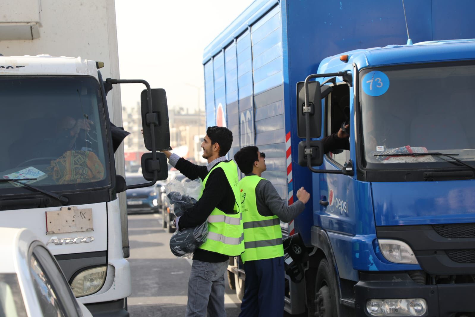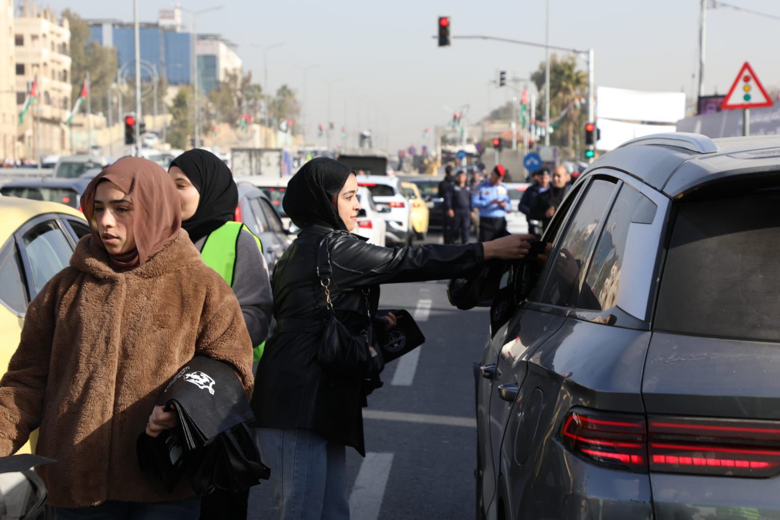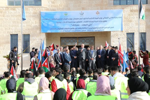 جانب من مشاركة مرتبات الأمن العام في الحملة البيئية "خلّي كيسك بسيارتك"، التي تم إطلاقها في محافظة الزرقاء بتنظيم من وزارتي البيئة والشباب وجامعة الزرقاء الأهلية.