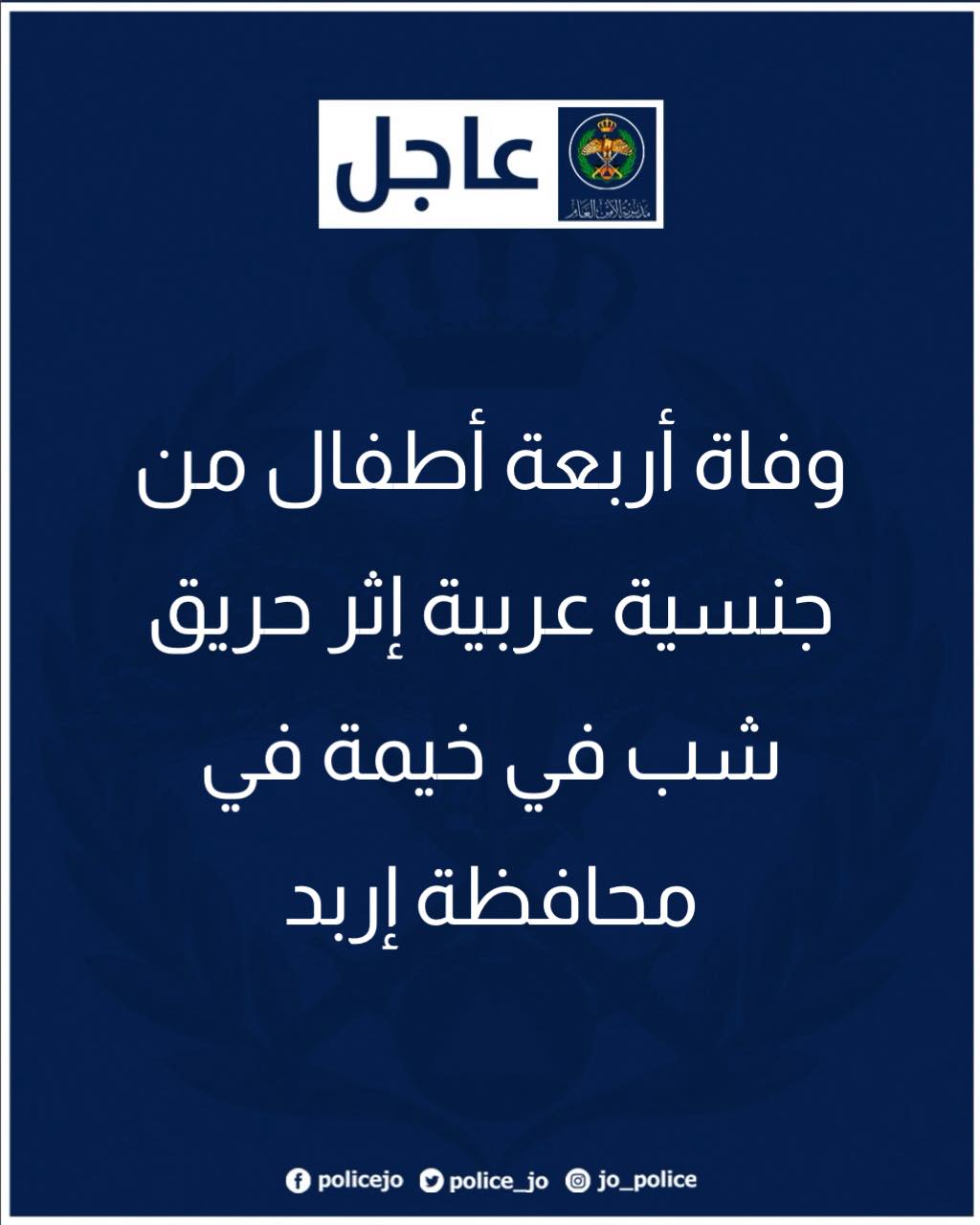 وبين الناطق الإعلامي أن الحريق نتج عنه وفاة أربعة أطفال إثر تعرضهم لحروق بالغة في الجسم وجميعهم من عائلة واحدة ومن جنسية عربية تتراوح أعمارهم ما بين (6)و (9) أعوام.