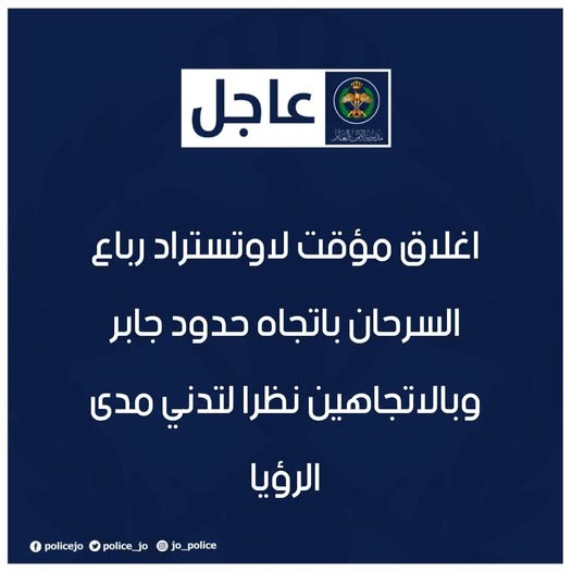 إدارة السير تعلن عن بدء أعمال دهانات وتخطيط على محاور ومنتصف طريق المطار ابتداءا من جسر ناعور ولغاية جسر المطار