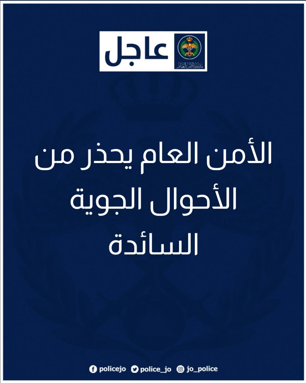 الأمن العام يحذر من الأحوال الجوية السائدة