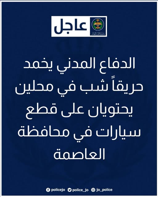 قال الناطق الإعلامي باسم مديرية الأمن العام أن طواقم الإطفاء المتخصصة والعاملة في مديرية دفاع مدني شرق إربد