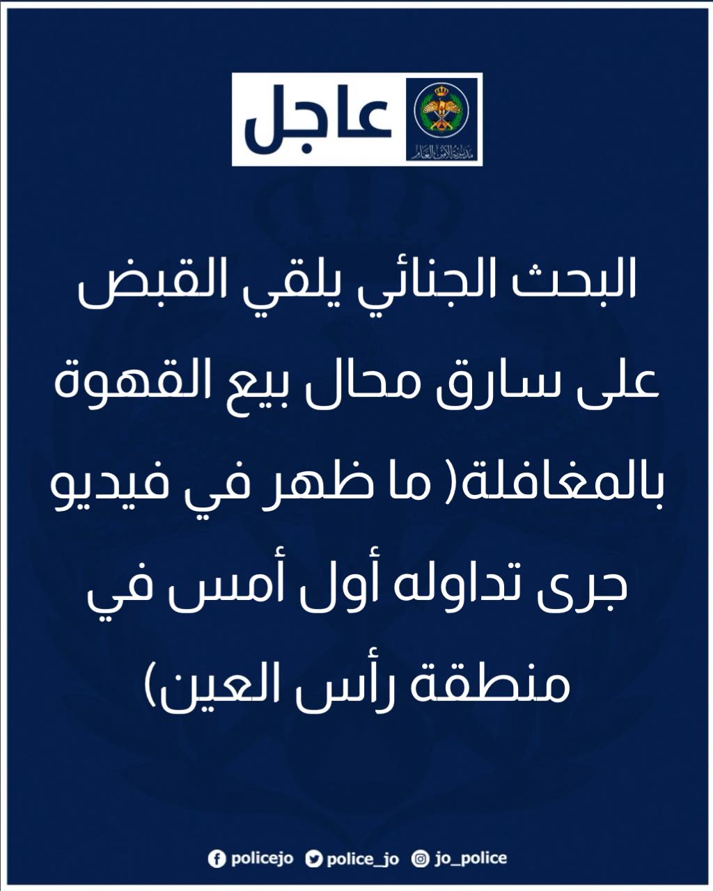 قال الناطق الإعلامي باسم مديرية الأمن العام أن الطواقم المتخصصة في الدفاع المدني والشرطة في محافظة الزرقاء تعاملت مع حادث تصادم