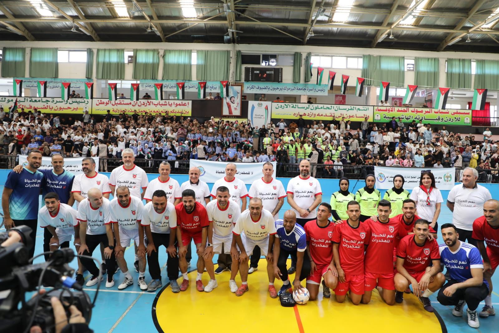 وتخلل الحفل مباراة وديّة جمعت بين لاعبي المنتخب الوطني القدامى والحاليين، أقيمت في أجواء مفعمة بالحماس والروح الرياضية، إيصالاً لرسالة شبابية هادفة مفادها أن الرياضة طريق للحياة... لا للمخدرات.