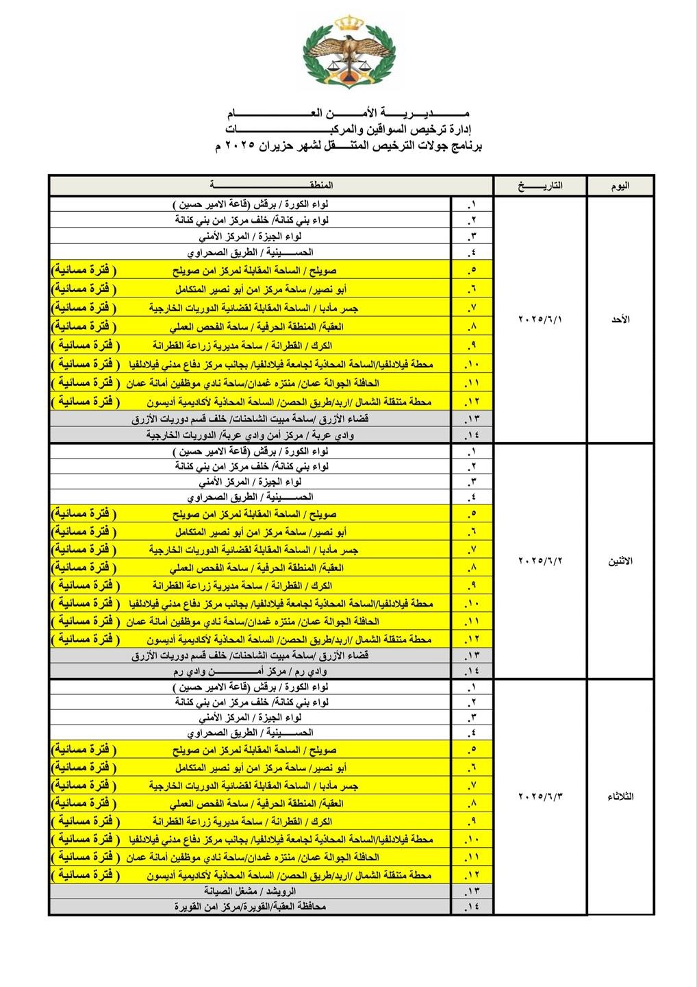 إدارة ترخيص السواقين والمركبات تعلن عن مواعيد العمل بجولات الترخيص المتنقل ضمن المبادرة الابتكارية ( بنوصلك ) خلال شهر كانون الثاني لعام 2025
