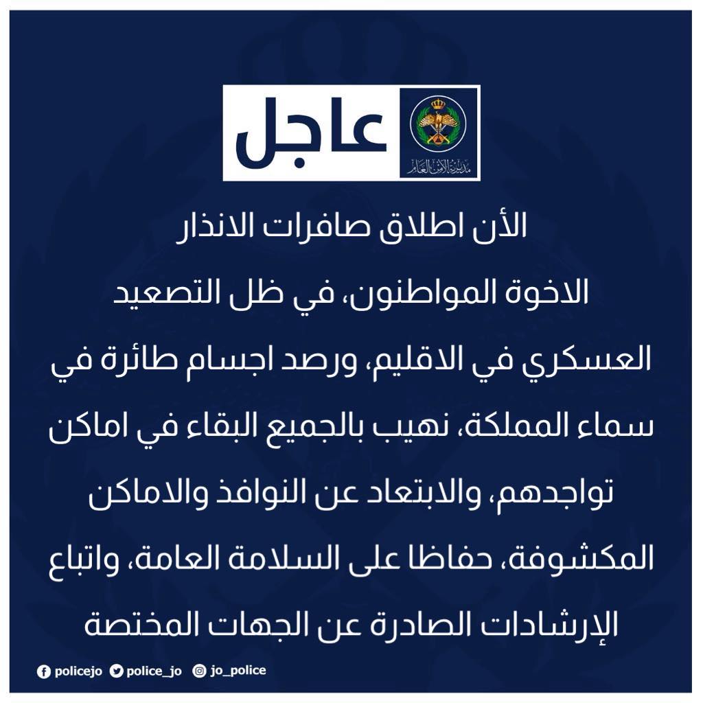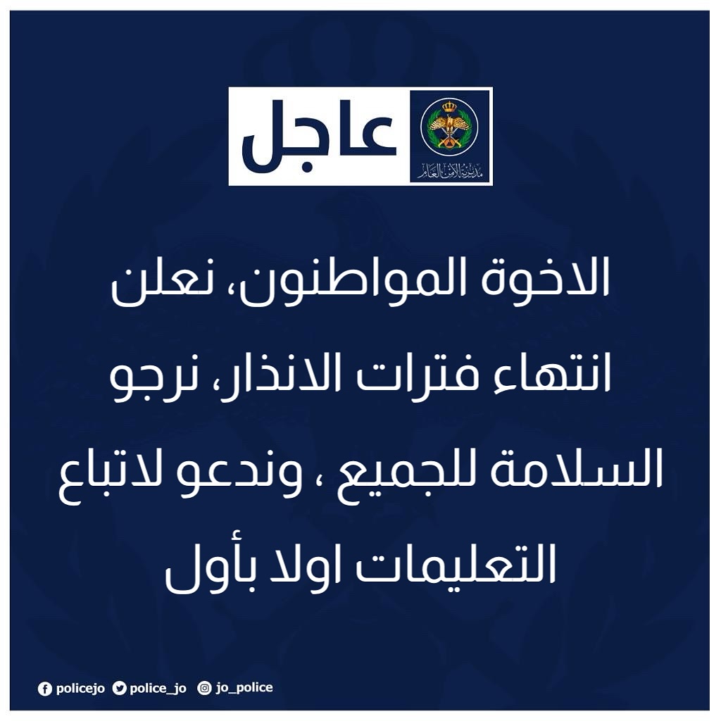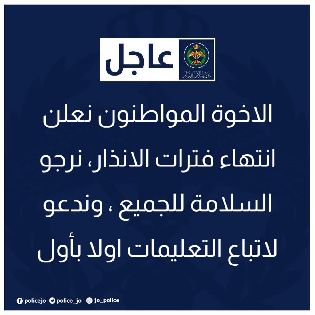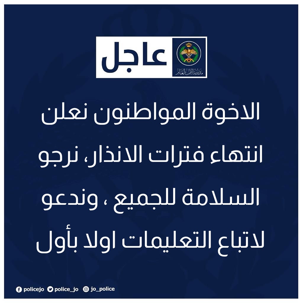 اتباع اقصى درجات الحيطة والحذر والتأني أثناء القيادة حرصا على سلامة الأخوة المواطنين خصوصا المتوجهين من المحافظات كافة الى العاصمة عمان