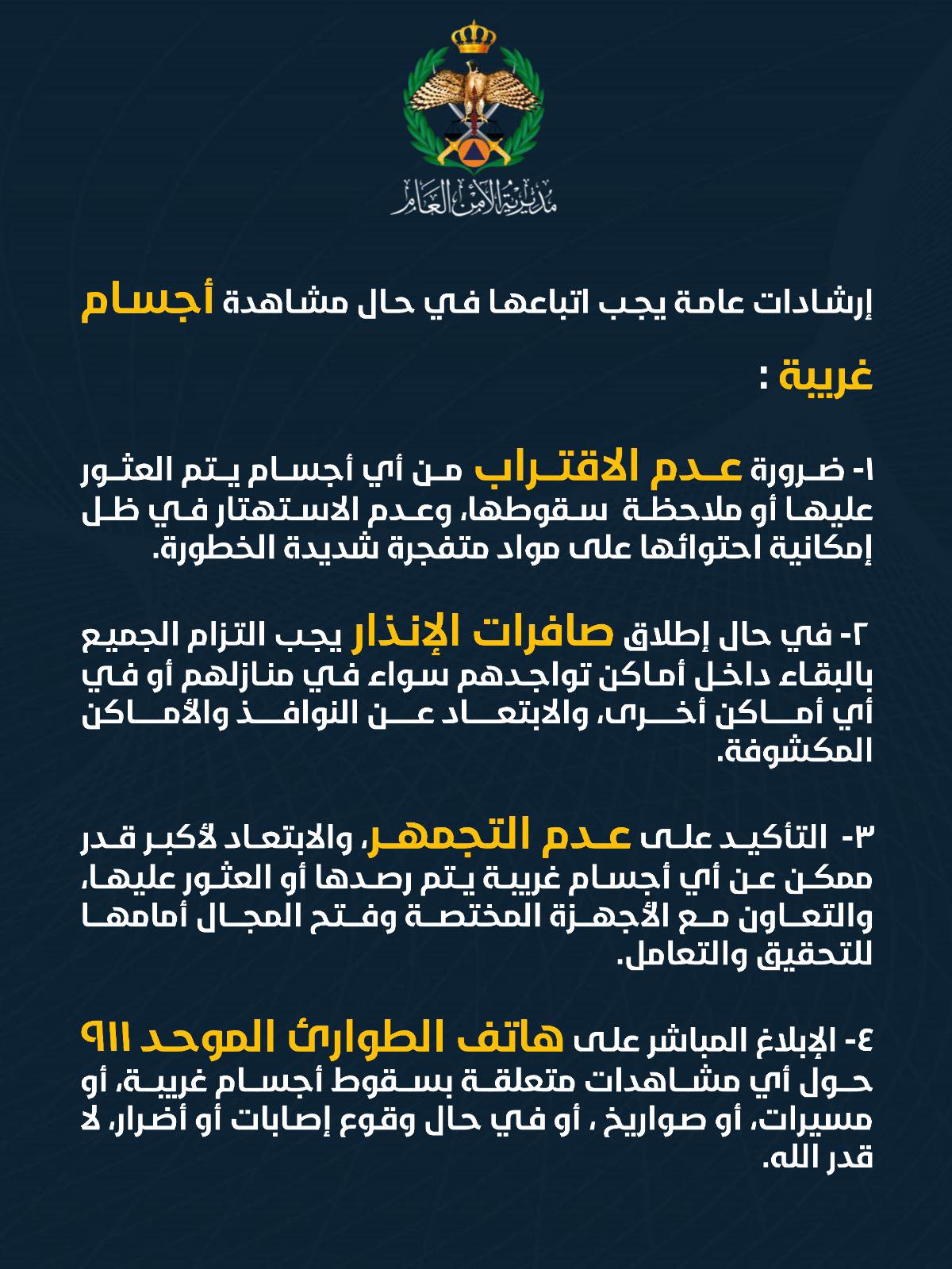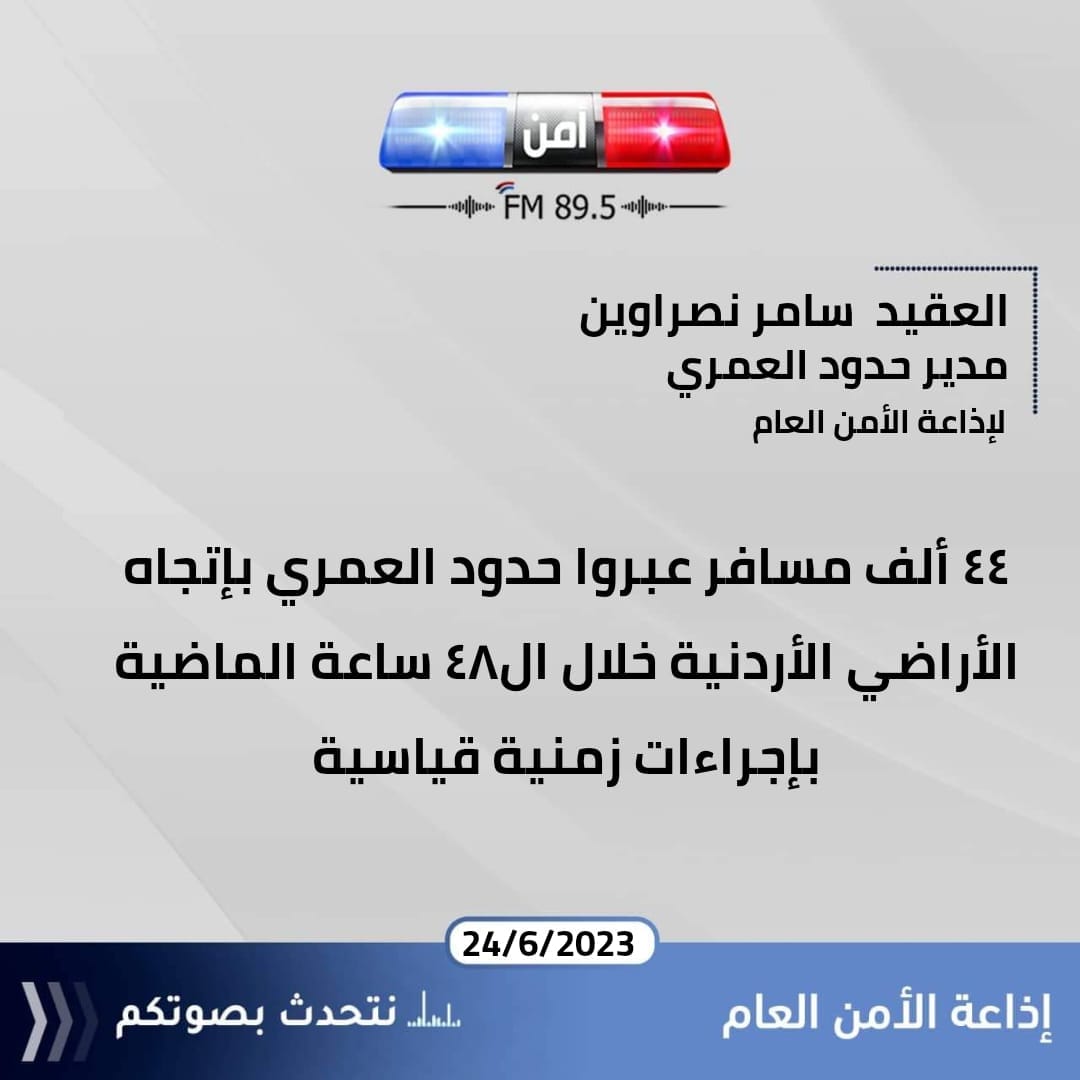 مديرية الامن العام تعلن عن تكثيف رقابتها على كافة الظواهر السلبية التي تترافق والتعبير الخاطئ عن الفرح