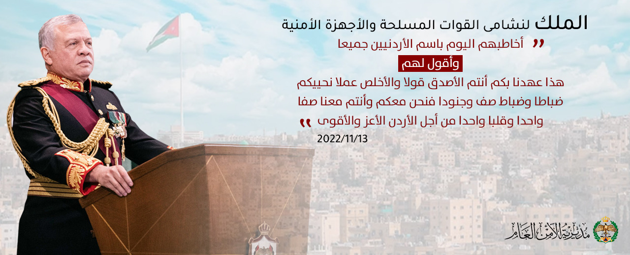 أما وقد صدرت إرادتنا بتعيينكم مديراً للأمن العام ، فإنني أبعث إليكم بتحية الاعتزاز والتقدير ولجميع منتسبي المديرية العامة للأمن العام على جهودكم المخلصة وتفانيكم في خدمة المواطنين وحماية أمنهم وأمن وطننا الحبيب . ...