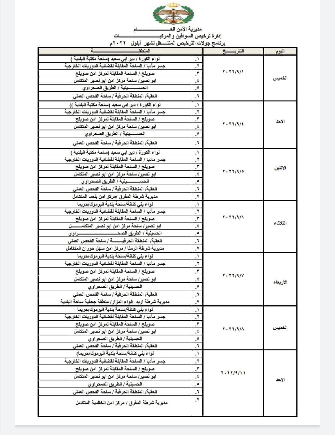 إدارة ترخيص السواقين والمركبات تعلن عن مواعيد العمل بجولات الترخيص المتنقل ضمن المبادرة الابتكارية ( بنوصلك ) خلال شهر شباط لعام 2025