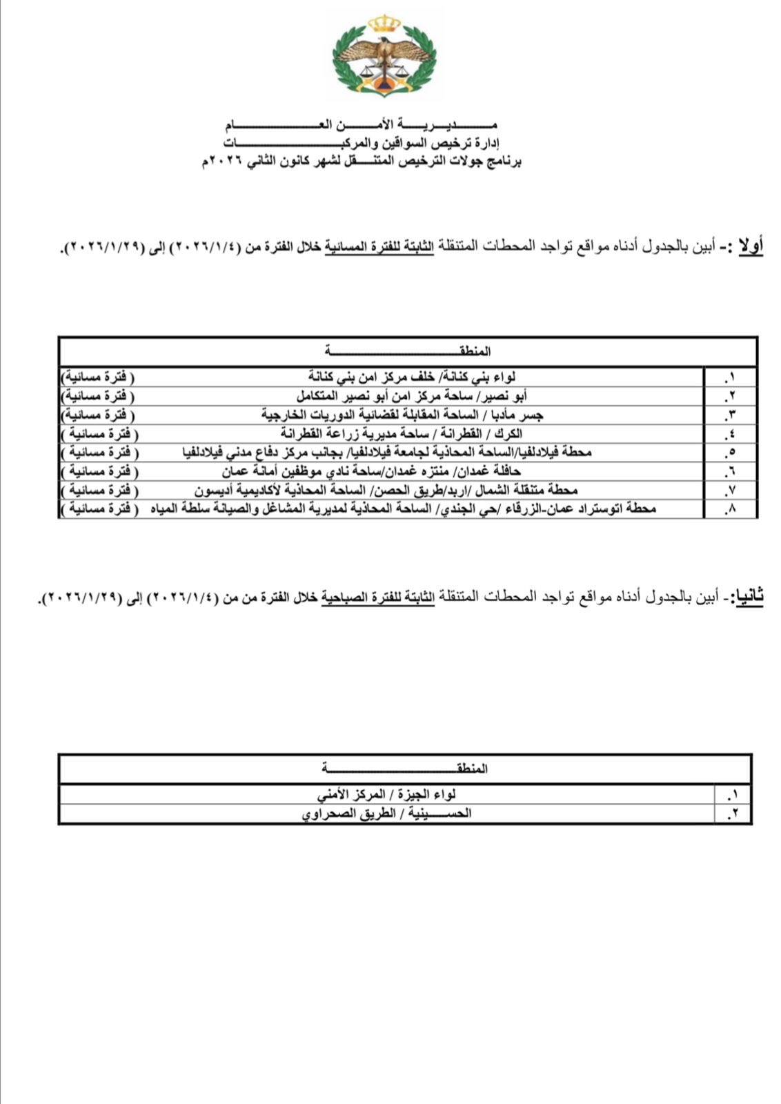 إدارة ترخيص السواقين والمركبات تعلن عن مواعيد العمل بجولات الترخيص المتنقل ضمن المبادرة الابتكارية ( بنوصلك ) خلال شهر شباط لعام 2025