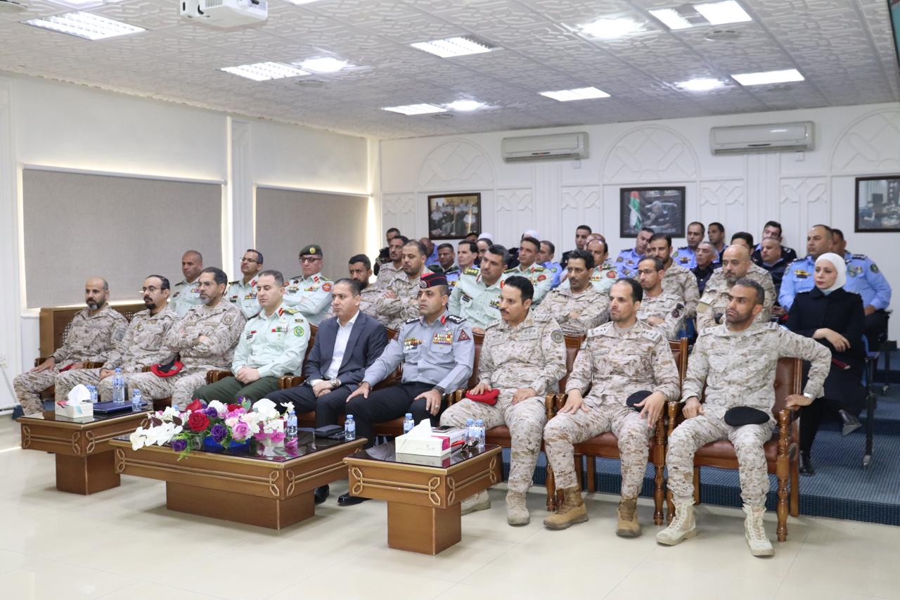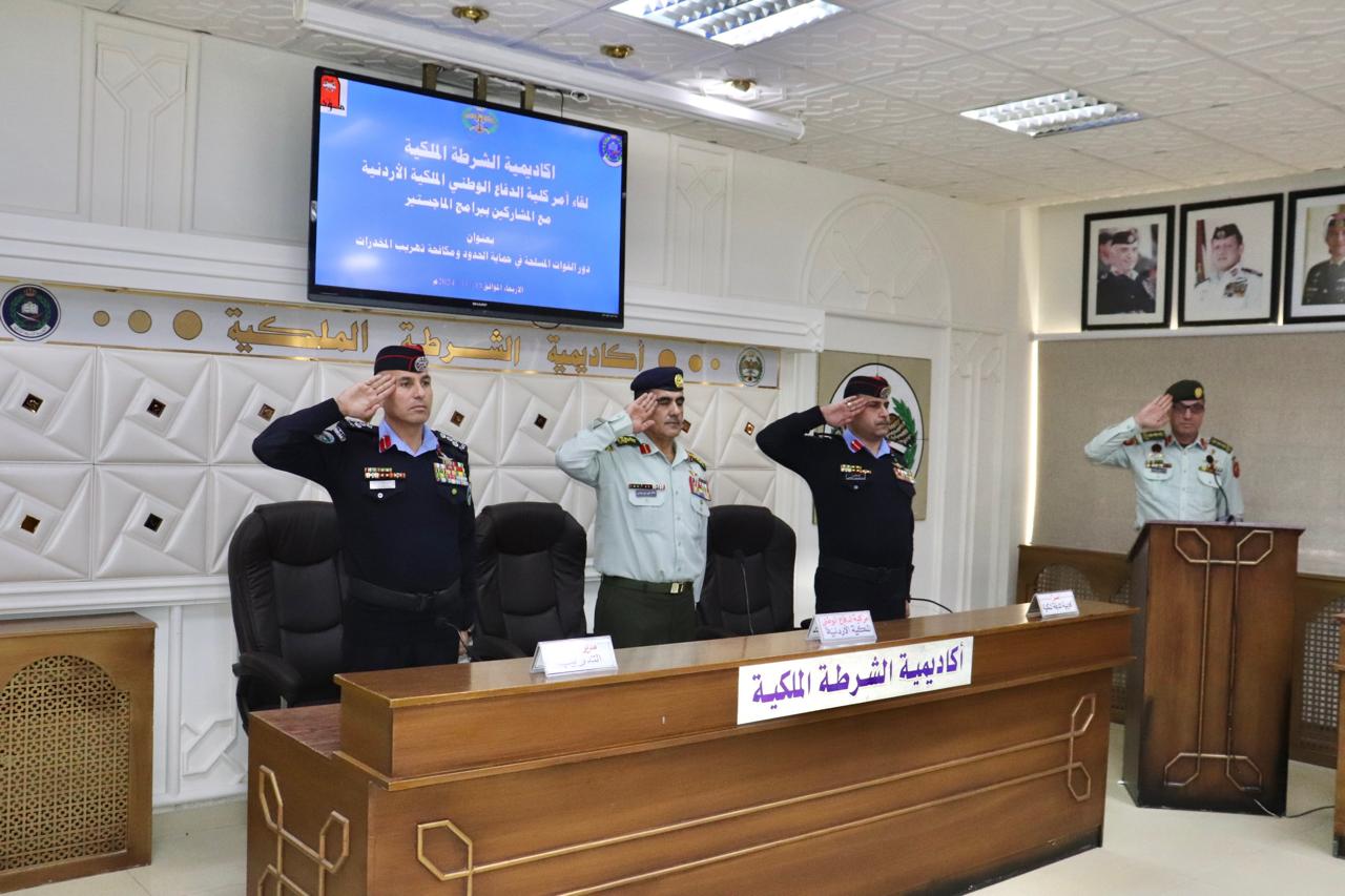 ألقى آمر كلية الدفاع الوطني الملكية الأردنية العميد الركن خالد علي بني يونس محاضرة بعنوان (دور القوات المسلحة في حماية الحدود ومكافحة تهريب المخدرات) بحضور المشاركين في برامج الدارسات العليا في أكاديمية الشرطة الملكية و عدد من قادة وضباط وحدات الأمن العام من مختلف التشكيلات.