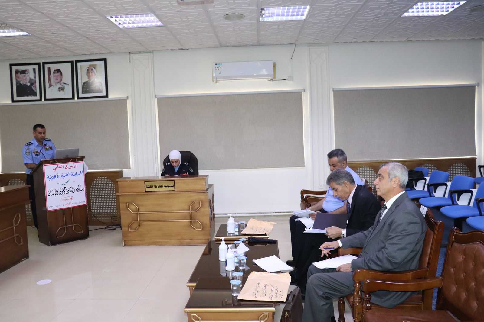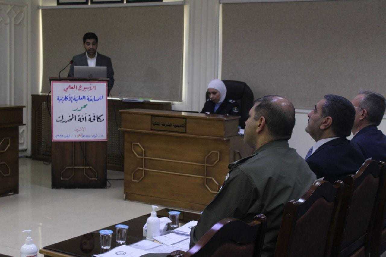 انطلقت اليوم في أكاديمية الشرطة الملكية فعاليات الأسبوع العلمي الذي يتخلله مسابقة علمية أكاديمية وسيتم مناقشة الأبحاث مع المشاركين في المسابقة من قبل لجان تحكيم تم تشكيلها من ضباط الأمن العام العاملين والمتقاعدين من حملة شهادة الدكتوراه .