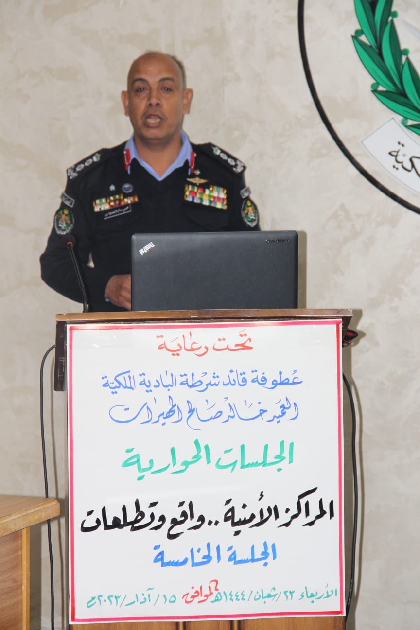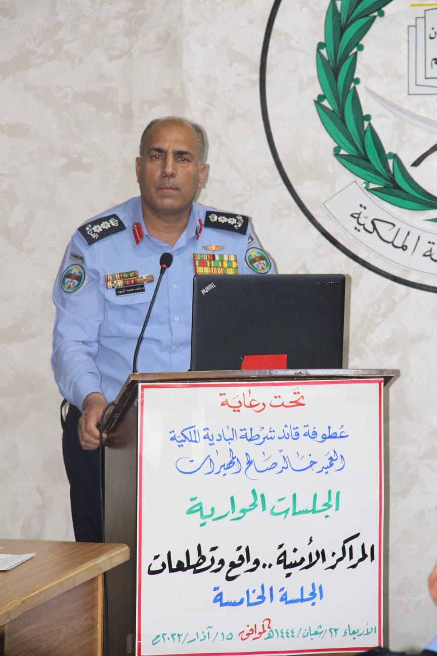 وعقدت اليوم الجلسة الحوارية الخامسة الختامية بحضور قائد شرطة البادية الملكية وبحضور عدد من مدراء الشرطة ورؤساء المراكز الأمنية ومساعديهم ومندوبي الإدارات والوحدات الداعمة للمراكز الأمنية .