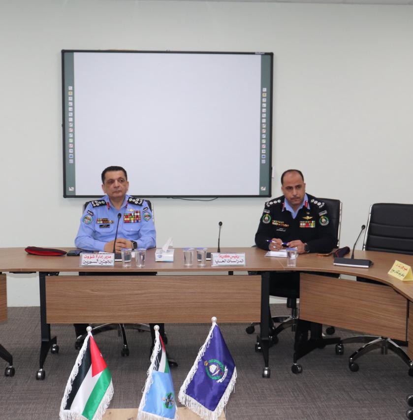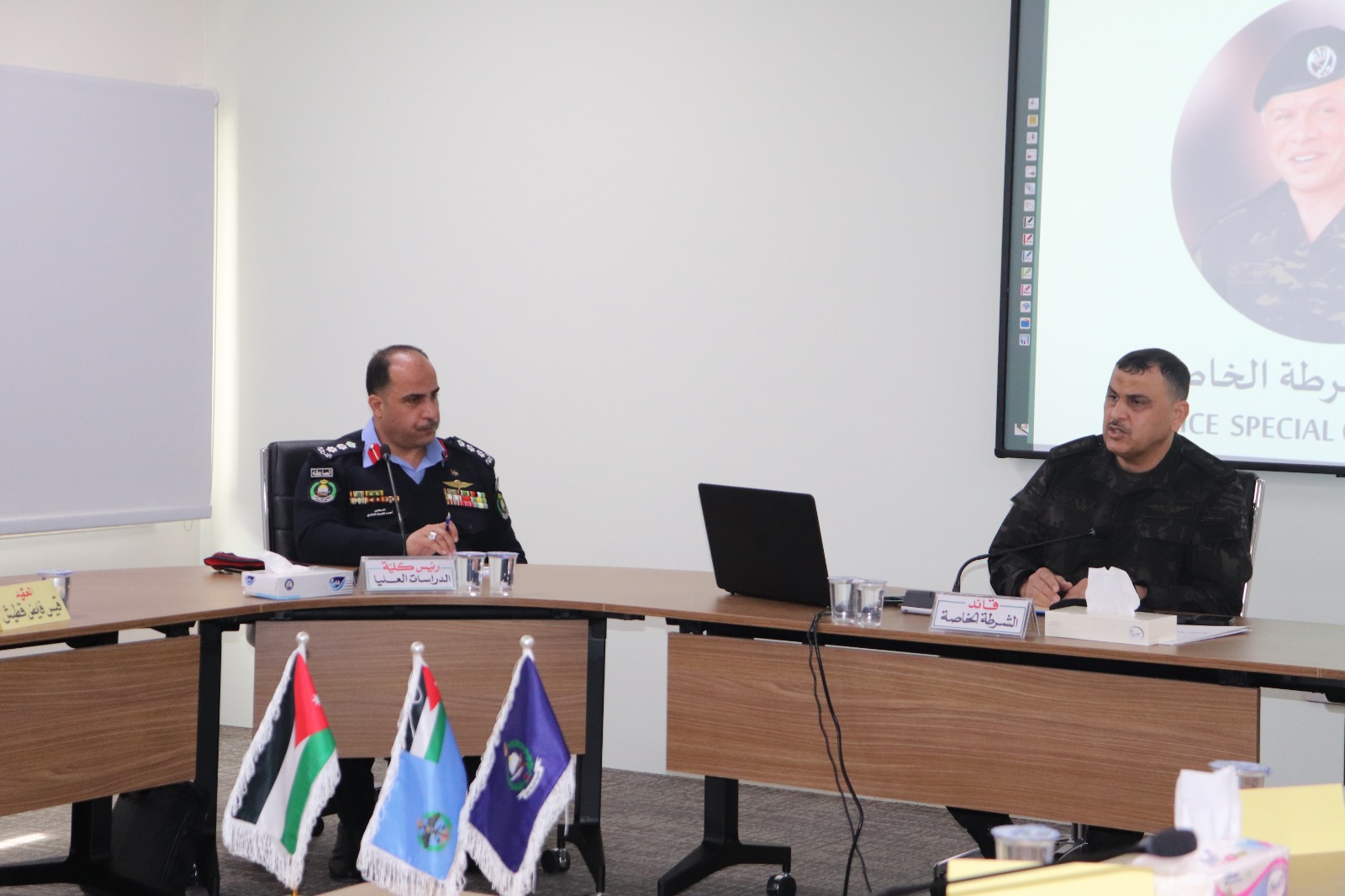 جانب من اللقاءات التي عقدت للمشاركين في دورة القيادة العليا رقم (١) والمنعقدة حاليًا في أكاديمية الشرطة الملكية مع عدد من المسؤولين .