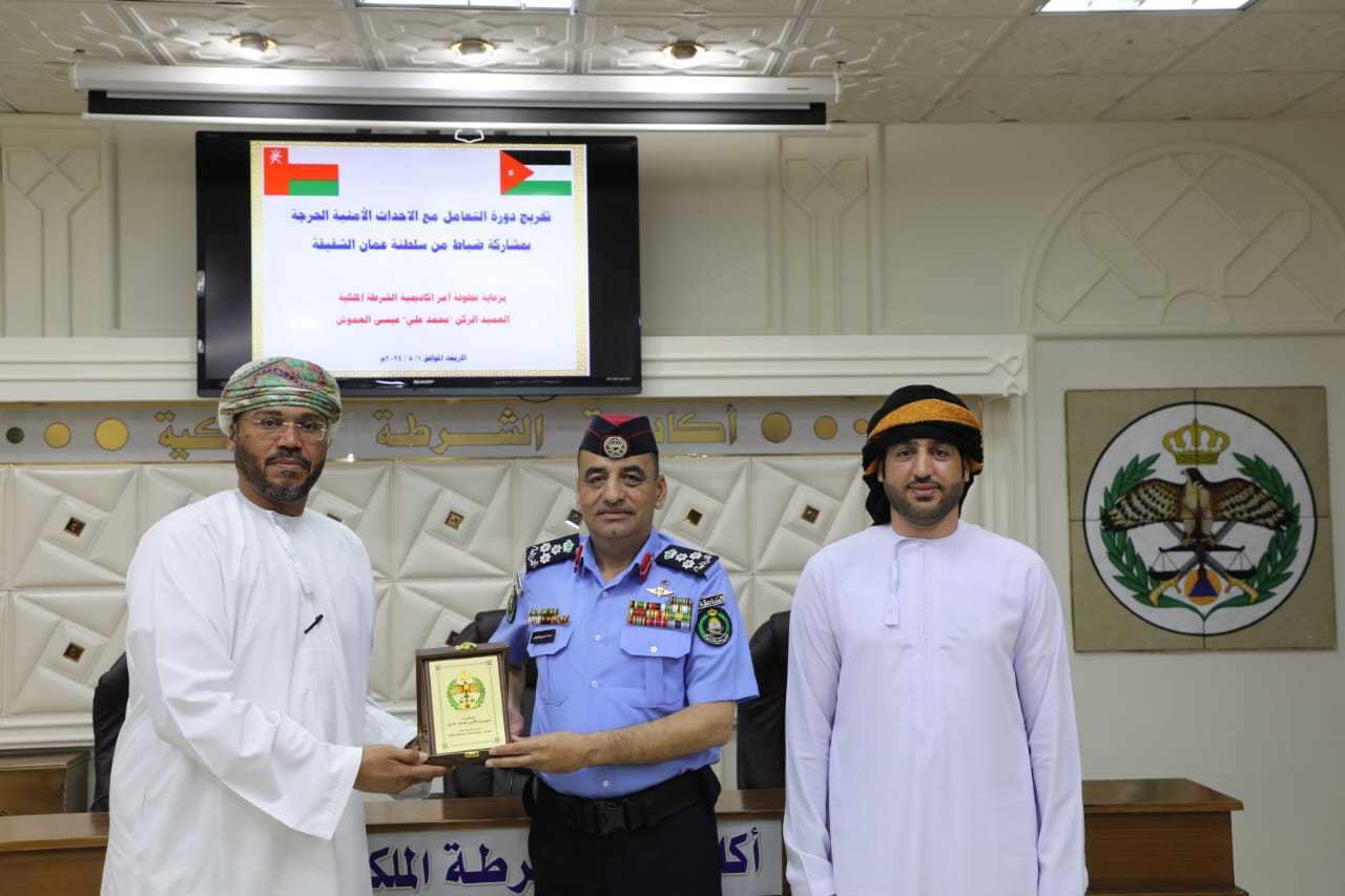 جانب من تخريج عدة دورات في أكاديمية الشرطة الملكية وقد شارك بها عدد من منتسبي مديرية الأمن العام باختلاف تشكيلاتها بالإضافة لمشاركين من هيئة النزاهة ومكافحة الفساد و مشاركين من شرطة عُمان السلطانية.