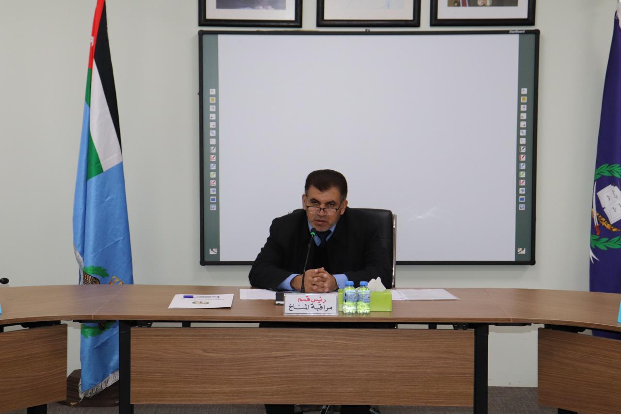 وحاضرة مندوب مدير عام دائرة الارصاد الجوية السيد احمد الطيار رئيس قسم مراقبة المناخ للمشاركين بالدورة للحديث عن موضوع "التغير المناخي والاحتباس الحراري وتأثيره على الأمن الوطني" لتعزيز الوعي البيئي وتأكيد أهمية دور البيئة في الأمن الوطني.