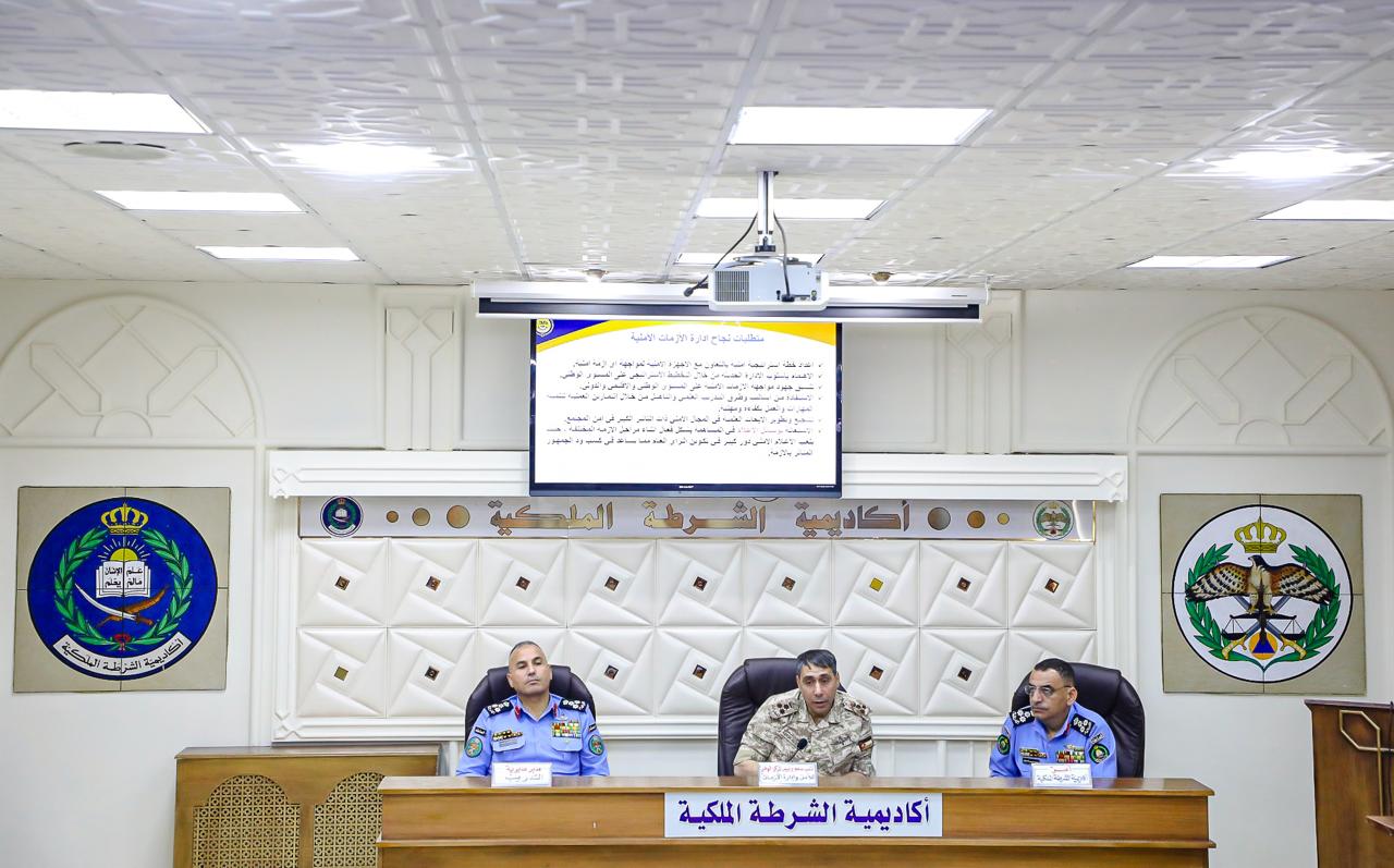 جانب من لقاء نائب سمو رئيس المركز الوطني للأمن وإدارة الأزمات طلبة برامج الماجستير في أكاديمية الشرطة الملكية