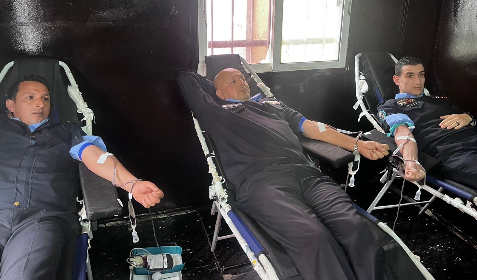 جانب من حملة التبرع بالدم التي نظمتها إدارة الاقامة والحدود في مبنى الإدارة وبالتعاون مع مديرية الخدمات الطبية