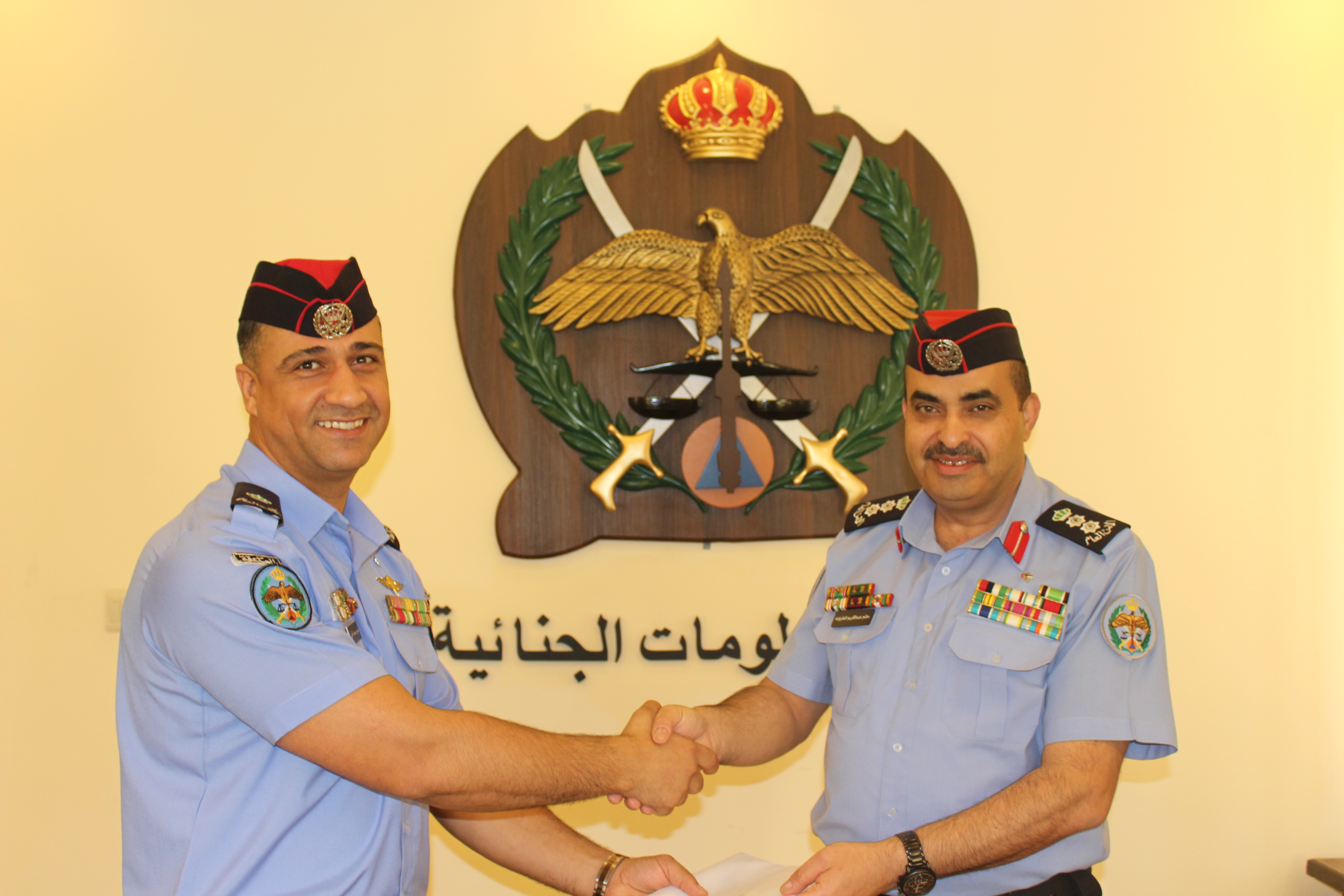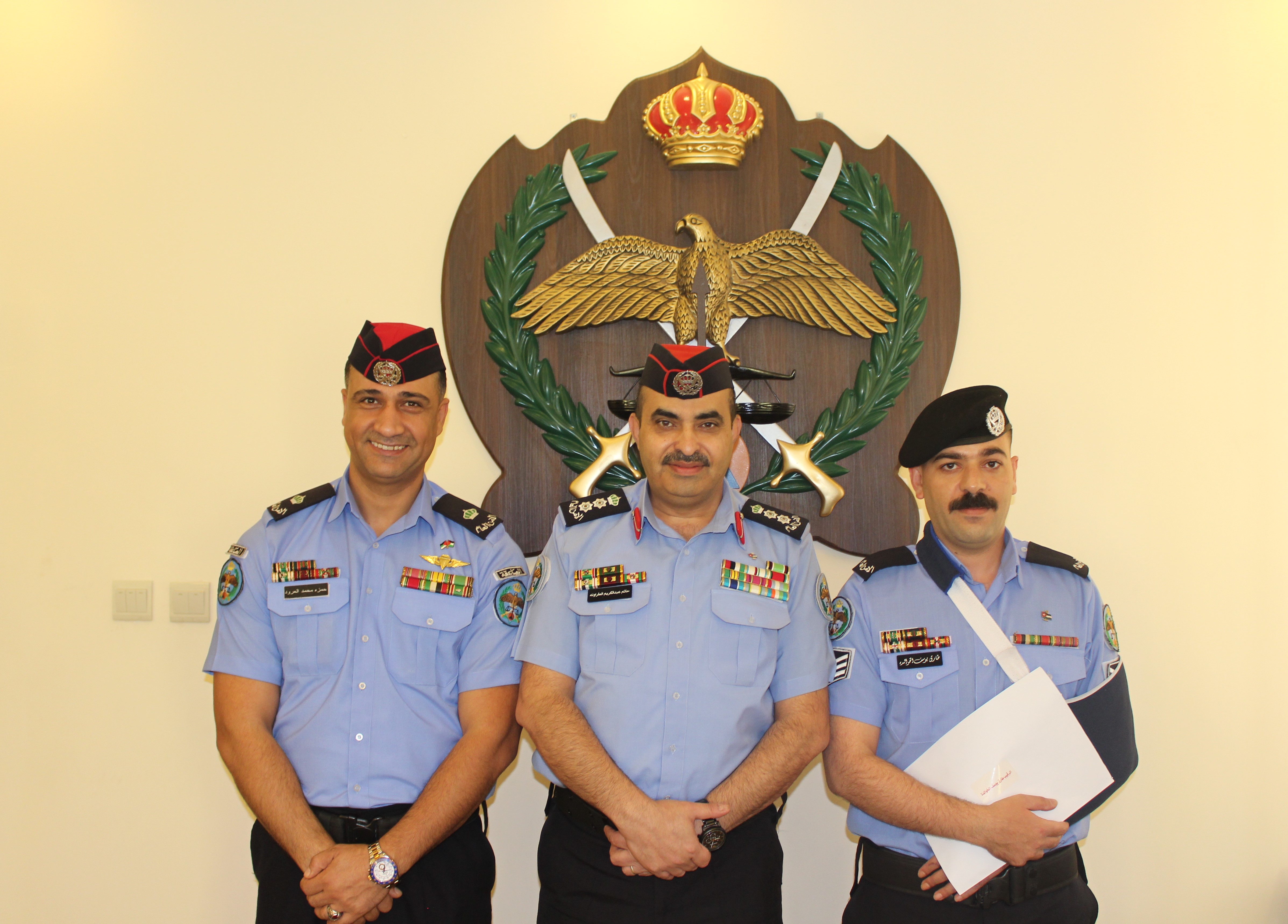 كرم مدير إدارة المعلومات الجنائية العقيد حاتم عبدالكريم الطراونة اليوم، الرائد حمزة محمد العرود رئيس قسم الفروع الخارجية والرقيب طارق يوسف الخوالدة