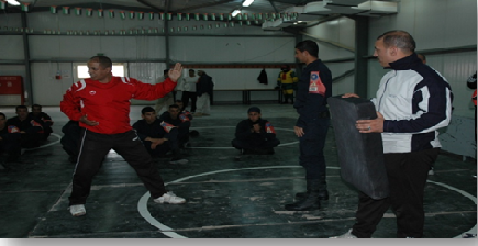 صالات تكتيكات الدفاع عن النفس وهي صالات كبيرة مكيفة مزودة بكافة التجهيزات والمهمات اللازمة لحركات الدفاع عن النفس وتستخدم للتدريبات التاليـة: حركات الدفاع عن النفس المختلفة ( تايكواندو, كاراتيه, جودو, سيجال, إلقاء القبض, التقييد).