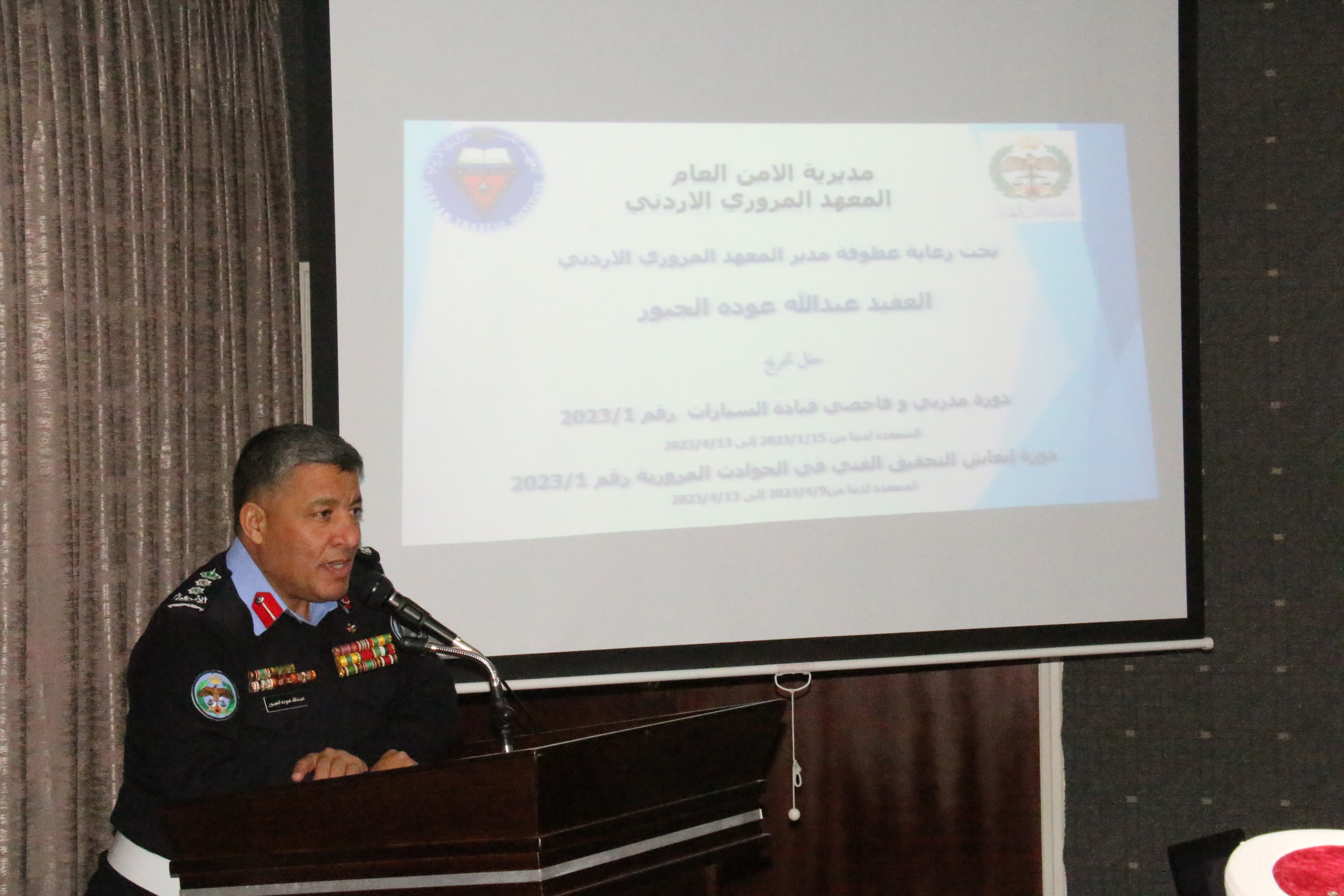 بحضور مدير المعهد المروري الأردني العقيد عبد الله عودة الجبور حفل تخريج دورة مدربي وفاحصي قيادة السيارات رقم(1/2023)