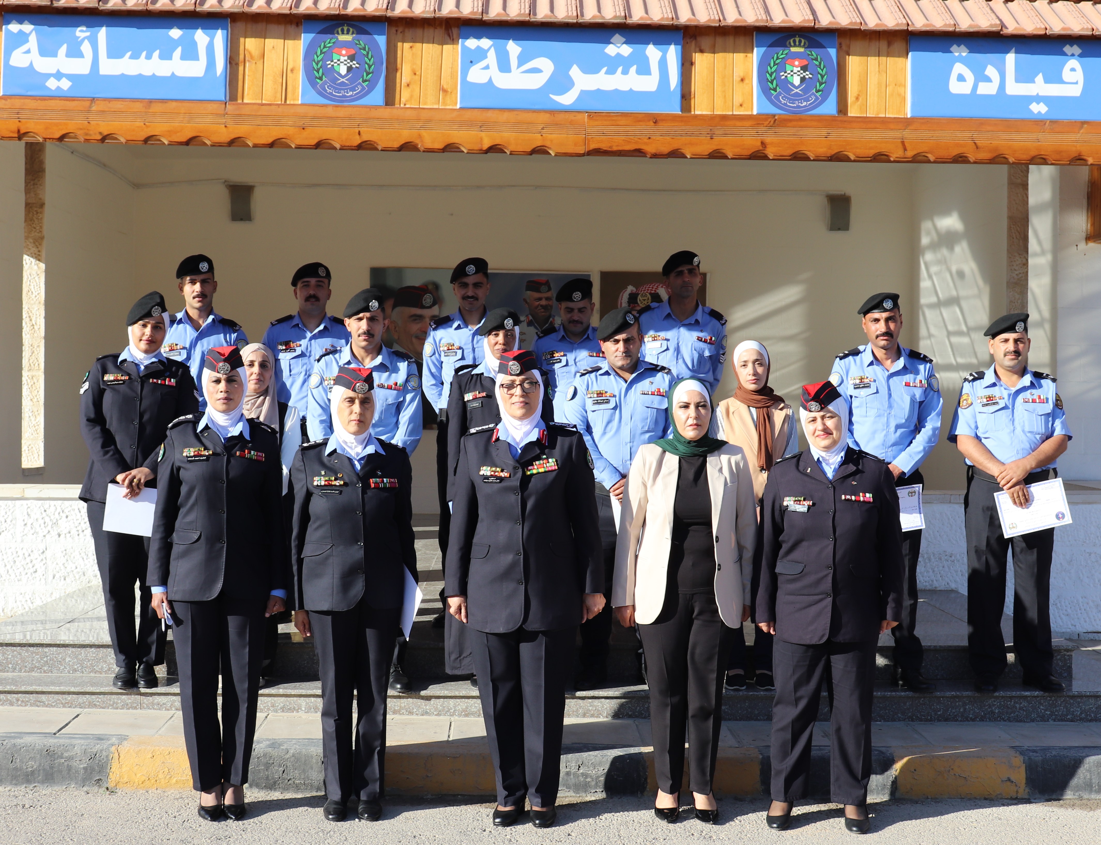 بحضور قائد الشرطة النسائية العقيد الدكتور دلال "محمد غازي" صوالحة ورئيس معهد الأميرة بسمة لتدريب الشرطة النسائية المقدم عريب "محمد جمال" حمدان