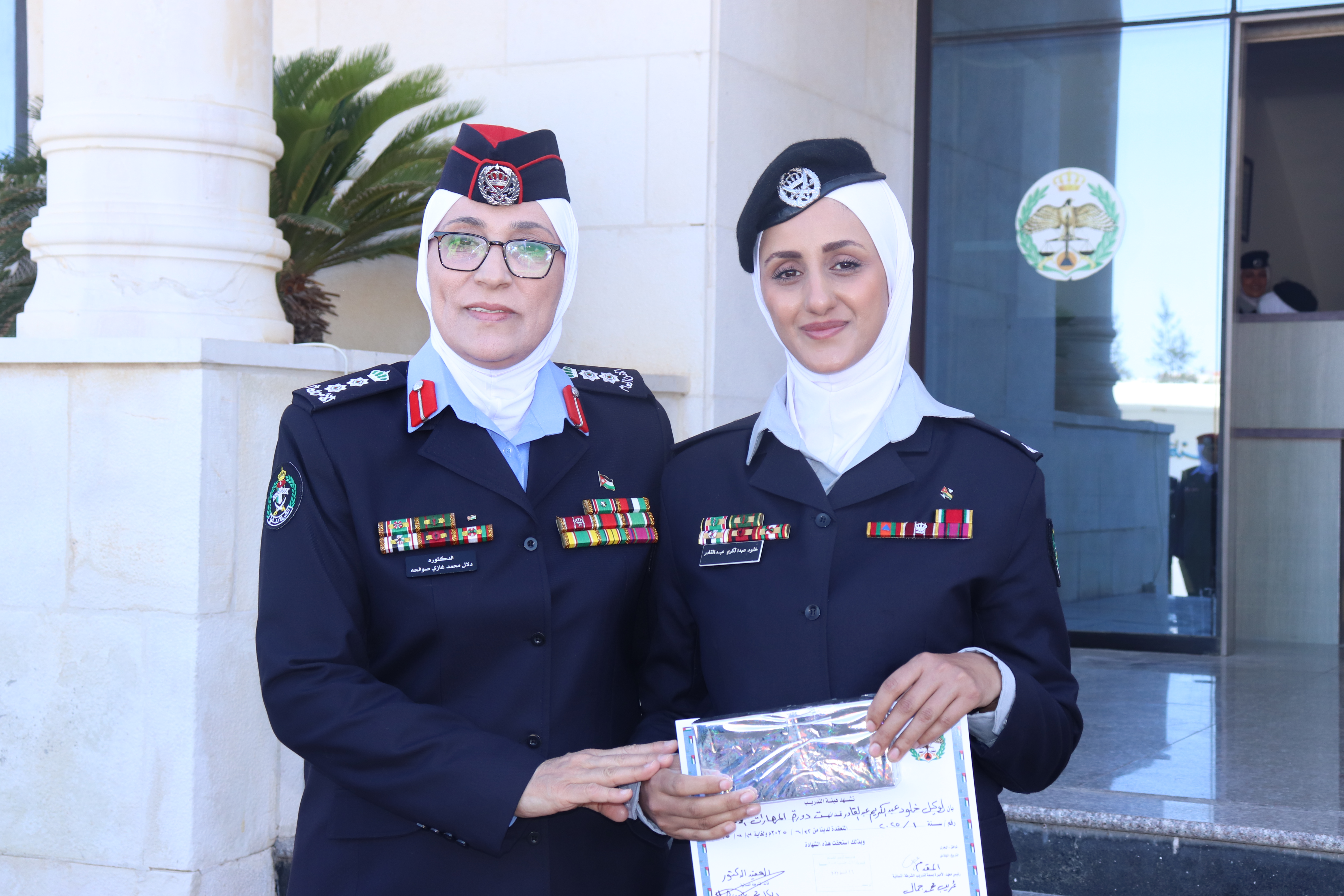 تخريج دورة المهارات الأساسية / 1 اليوم بحضور قائد الشرطة النسائية العقيد الدكتور دلال "محمد غازي" صوالحة ورئيس معهد الأميرة بسمة لتدريب الشرطة النسائية المقدم عريب "محمد جمال".