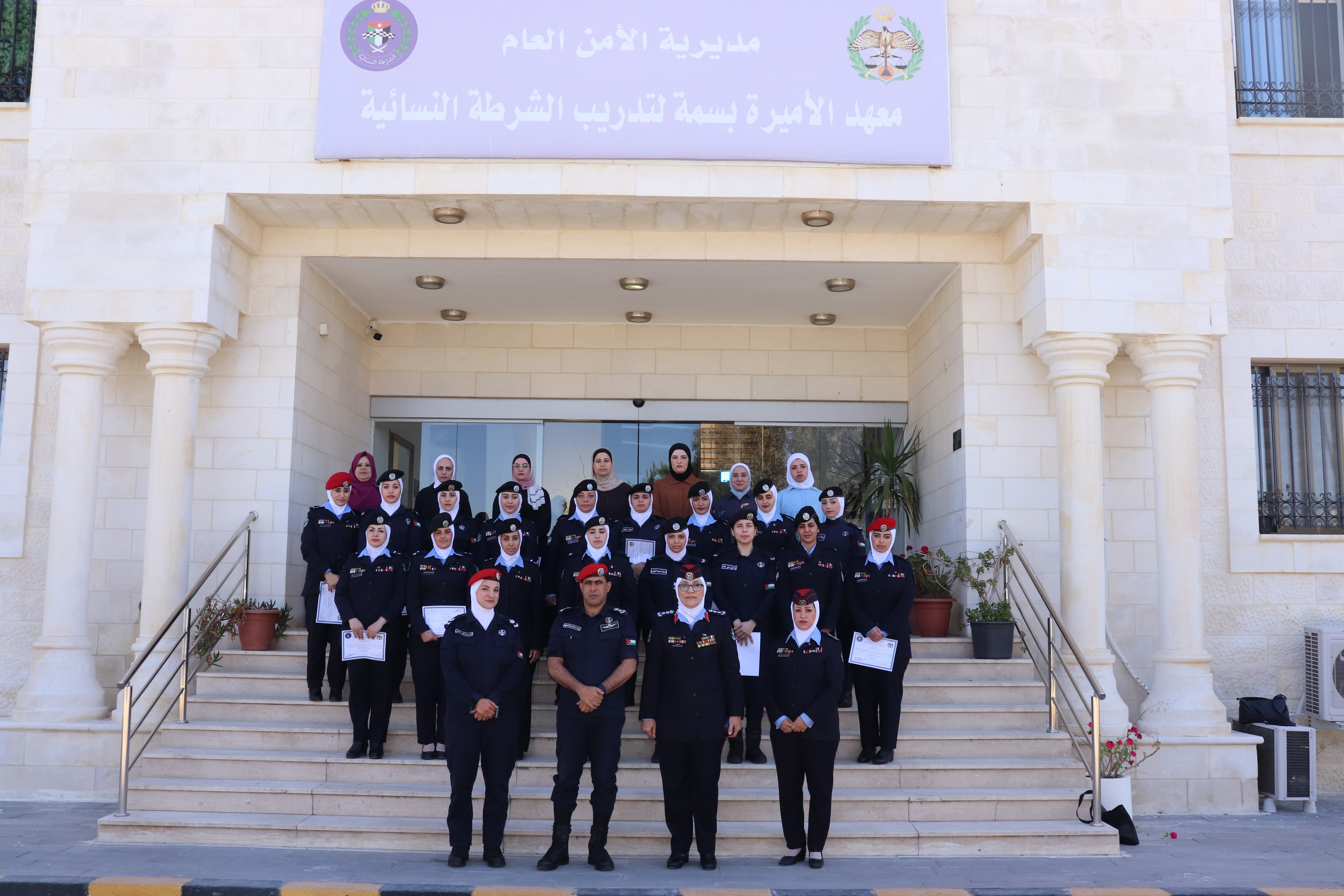 تخريج مجموعة من الدورات اليوم في معهد الأميرة بسمة لتدريب الشرطة النسائية بحضور قائد الشرطة النسائية العقيد الدكتور دلال "محمد غازي" صوالحة ورئيس معهد الأميرة بسمة لتدريب الشرطة النسائية بالإنابة المقدم ميساء عبد اللطيف محمد، والتي شارك بها عدد من منتسبي مديرية الأمن العام من مختلف الوحدات والإدارات :