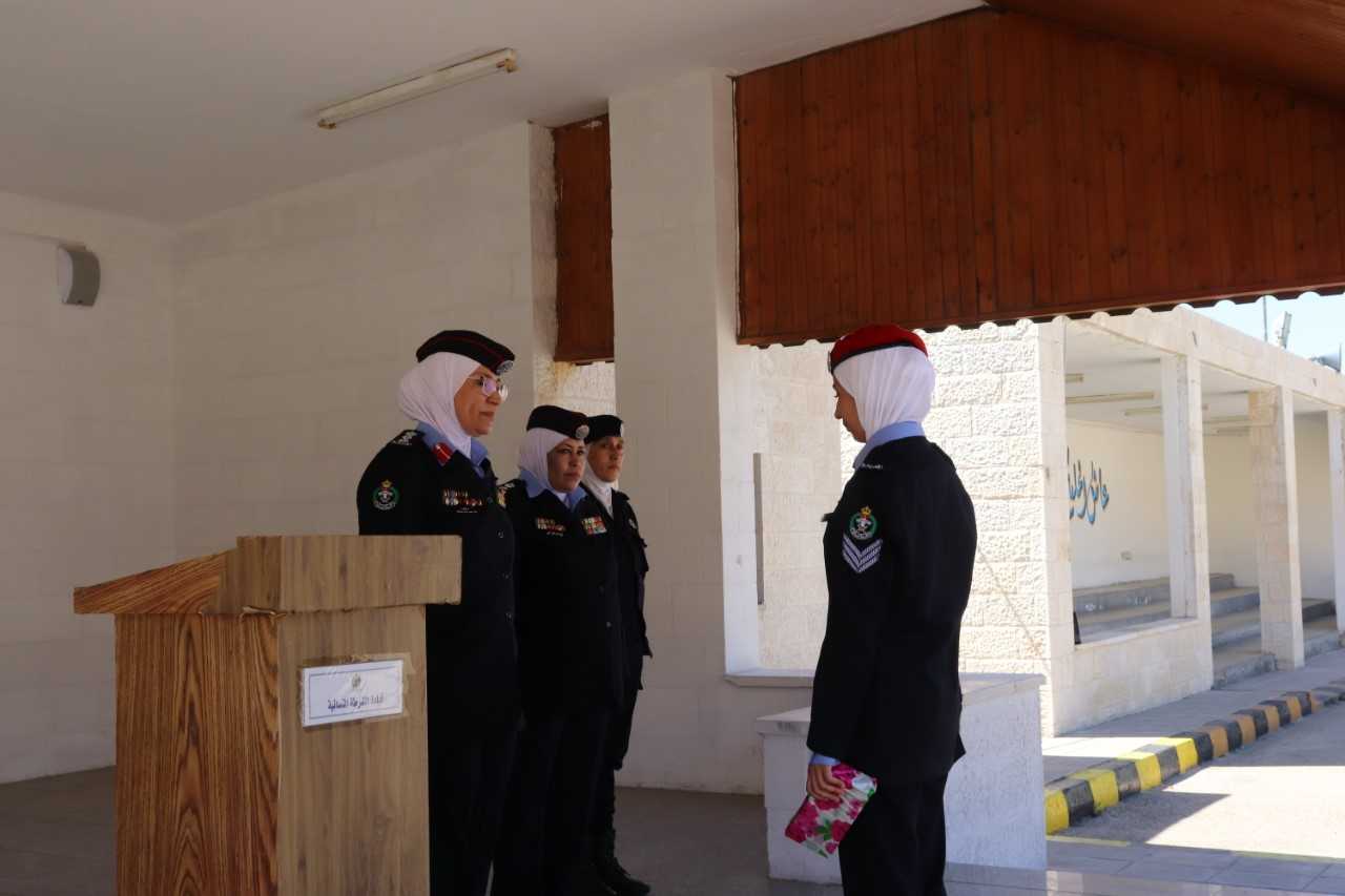 خرجت العقيد الدكتور دلال "محمد غازي" صوالحة قائد الشرطة النسائية صباح اليوم دورة حركات المشاة لوحدة الواجبات الميدانية وتدرب المشاركون على جميع حركات المشاة بكافة أشكالها والتي عُقدت لمدة أربعة أسابيع وشارك فيها (54) مشاركة، وتم تنفيذ برنامجها بالشراكة مع قيادة قوات الدرك و مندوب من مدينة الملك عبدالله الثاني ابن الحسين التدريبية، وإحتصلت على المركز الأول الرقيب ريما نضال إسحق من مرتب قيادة الشرطة النسائية.