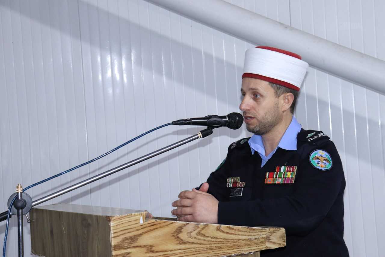 احتفلت قيادة الشرطة النسائية وبالتنسيق مع إدارة الارشاد والافتاء الديني اليوم بمناسبة ذكرى الاسراء والمعراج الشريفيين بحضور قائد الشرطة النسائية العقيد الدكتور دلال " محمد غازي " صوالحة وعدد من ضباط وضباط صف وأفراد الشرطة النسائية والمشاركين بدورات معهد الاميرة بسمة لتدريب الشرطة النسائية وهي أعظم معجزة إلهية في تاريخ سيرة سيدنا محمد عليه الصلاة والسلام بعد معجزة القرآن الكريم أيده بها الله سبحانه وتعالى حيث ذكر الرائد الامام زاهي العبادي من مرتب إدارة الإفتاء والإرشاد الديني فضائل هذه المعجزة والأحداث التي حصلت في تلك الليلة حيث فرضت الصلوات الخمس على المسلمين في تلك الليلة وأطلع النبي على مظاهر الكبرى لقدرة الله جل وعلا ورأى الآيات الكبرى حتى يمتلئ قلبه ثقة وايمانا ويزداد قوةً تمهيداً للهجرة النبوية الشريفة ، وما تدل عليه معجزة الإسراء والمعراج أن رسالة النبي ( صلى الله عليه وسلم ) هي عامة وعالمية صالحة لكل الأماكن والأزمنة وناسخة لجميع الرسالات السماوية قبلها وتدعو الى التوحيد والإيمان بالله والإبتعاد عن الشرك .