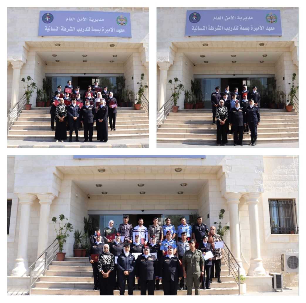 بحضور قائد الشرطة النسائية بالإنابة المقدم ثروة فياض تم صباح اليوم تخريج مجموعة دورات في معهد الأميرة بسمة لتدريب الشرطة النسائية حيث تناولت عدة مواضيع، والتي عقدت لمدة أسبوعين وشارك فيها عدد من مختلف الوحدات والإدارات.