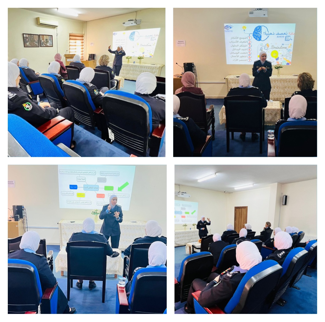 عقد اليوم في قيادة الشرطة النسائية / معهد الاميرة بسمة لتدريب الشرطة النسائية محاضرة (بعنوان جلسة العصف الذهني) القتها النقيب روشان عبد الباسط محمود من مركز الابتكار والتطوير