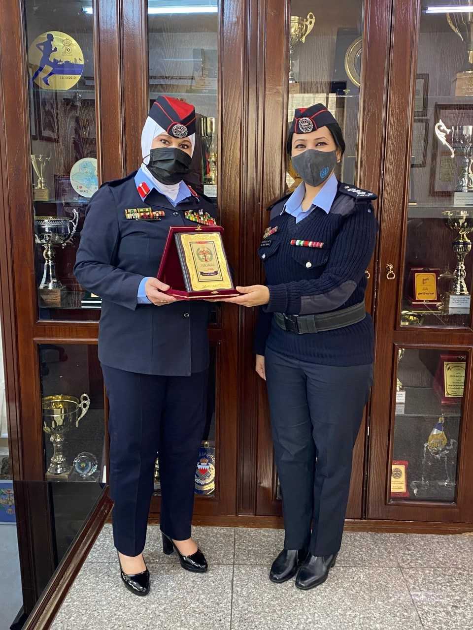 كرمت العقيد منى أبو عودة قائد الشرطة النسائية في مكتبها النقيب المهندسة