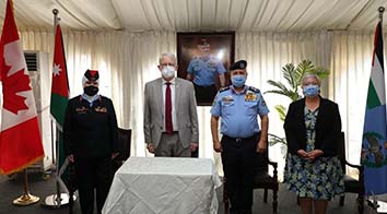 زار وزير الخارجية الكندي مارك غارنو والوفد المرافق له اليوم إدارة الشرطة النسائية / معهد الأميرة بسمة لتدريب الشرطة النسائية بهدف الإطلاع على سير دورة إعداد المدربين في الأسلحة النارية والتفتيش المنعقدة لدى المعهد والتي تعقد بالتعاون مع المشروع الكندي في السفارة الكندية في عمان..