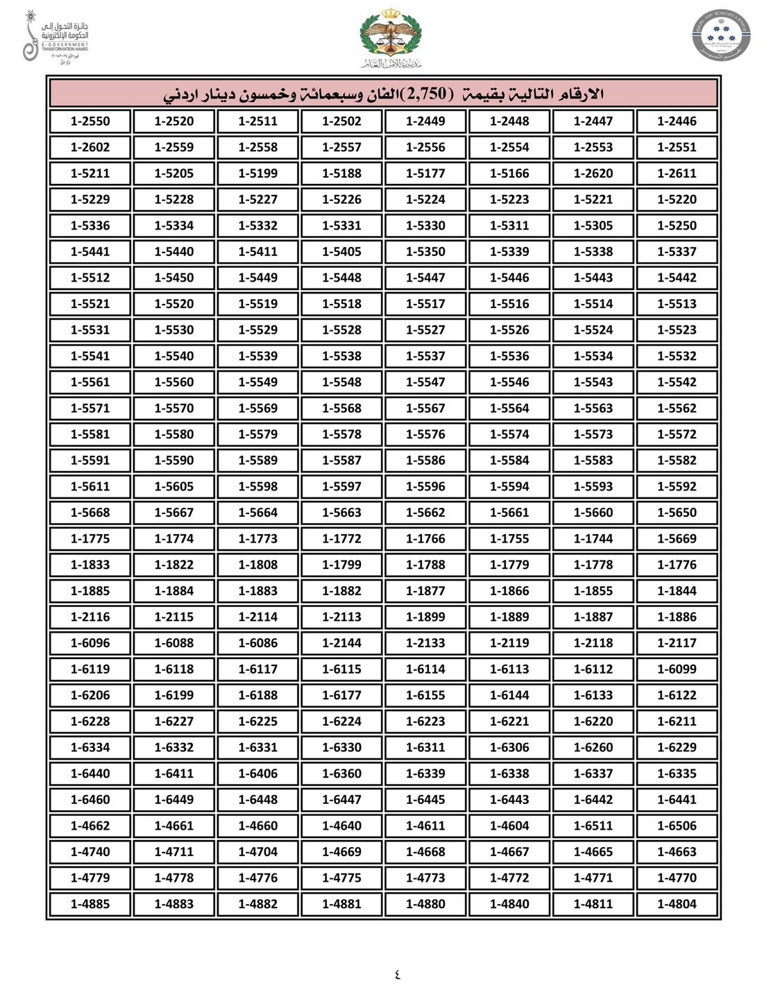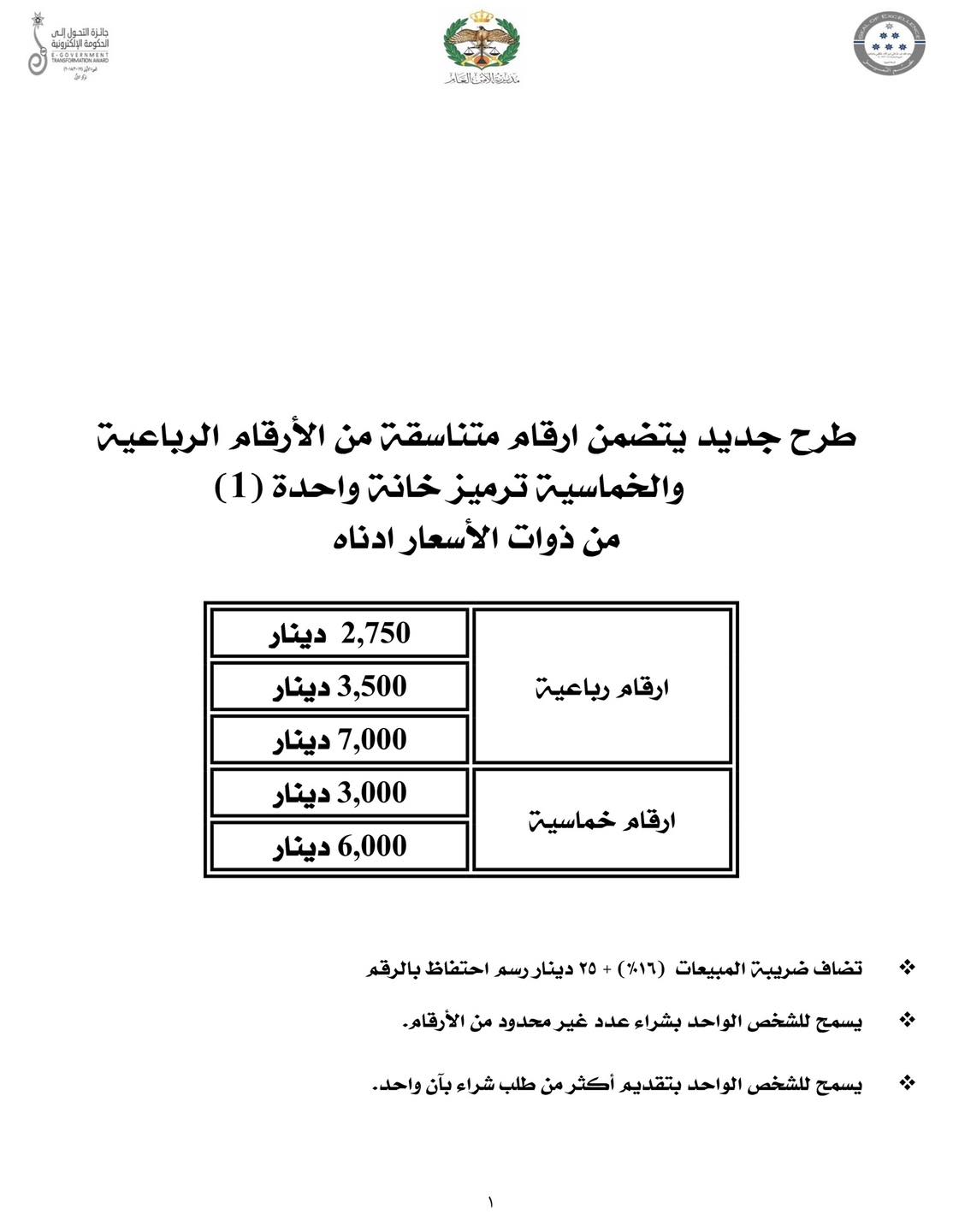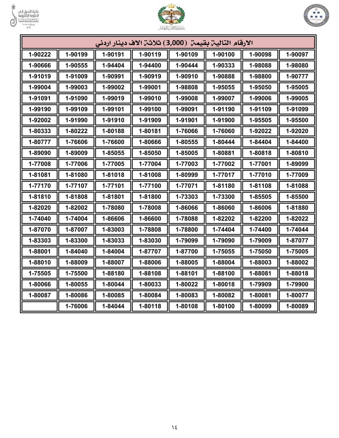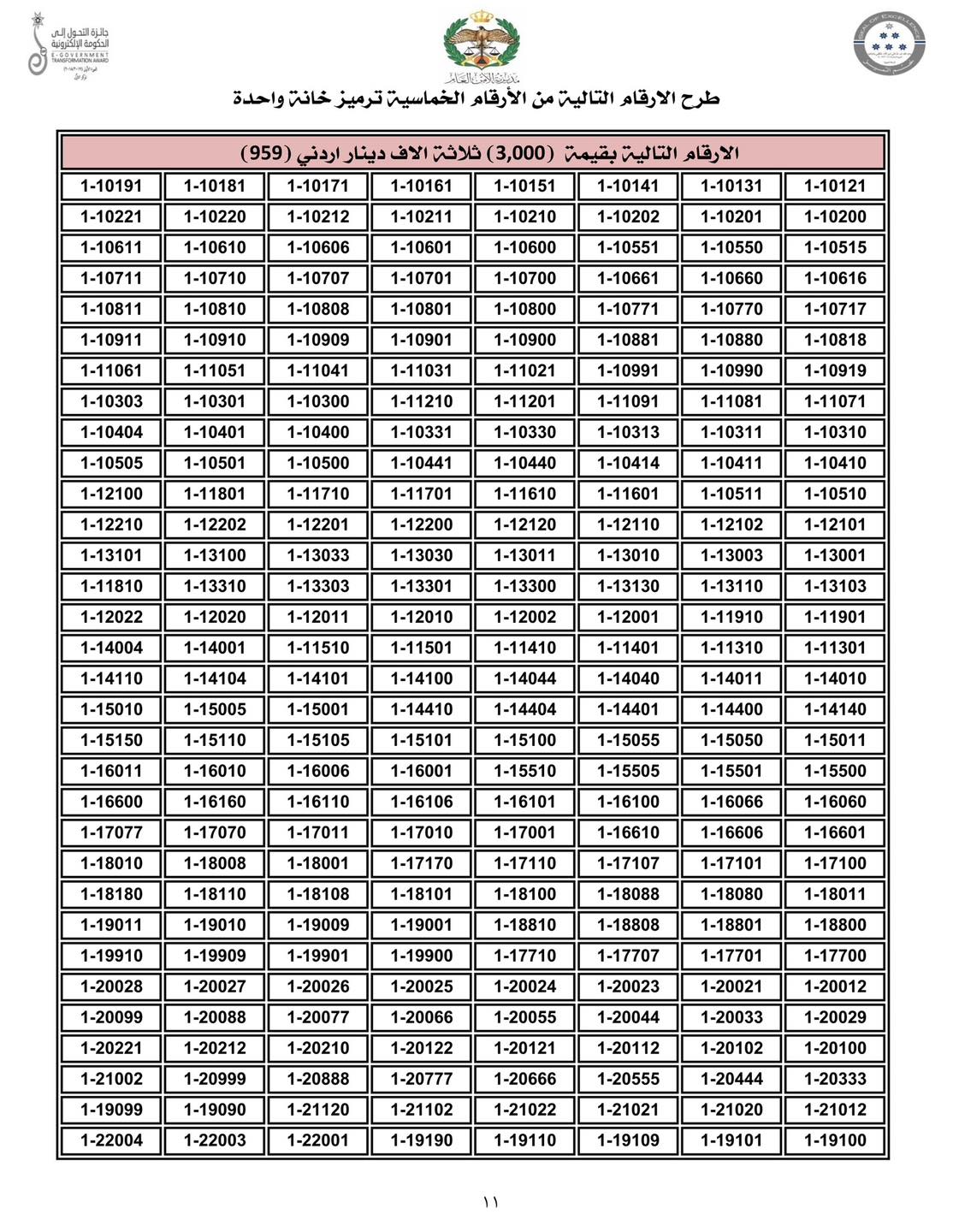 ** أرقام ثنائية وثلاثية ورباعية وخماسية من مختلف الترميزات، والتي كان مقرراً بيعها بالمزاد العلني بأسعار تبدأ من 25 ألف دينار