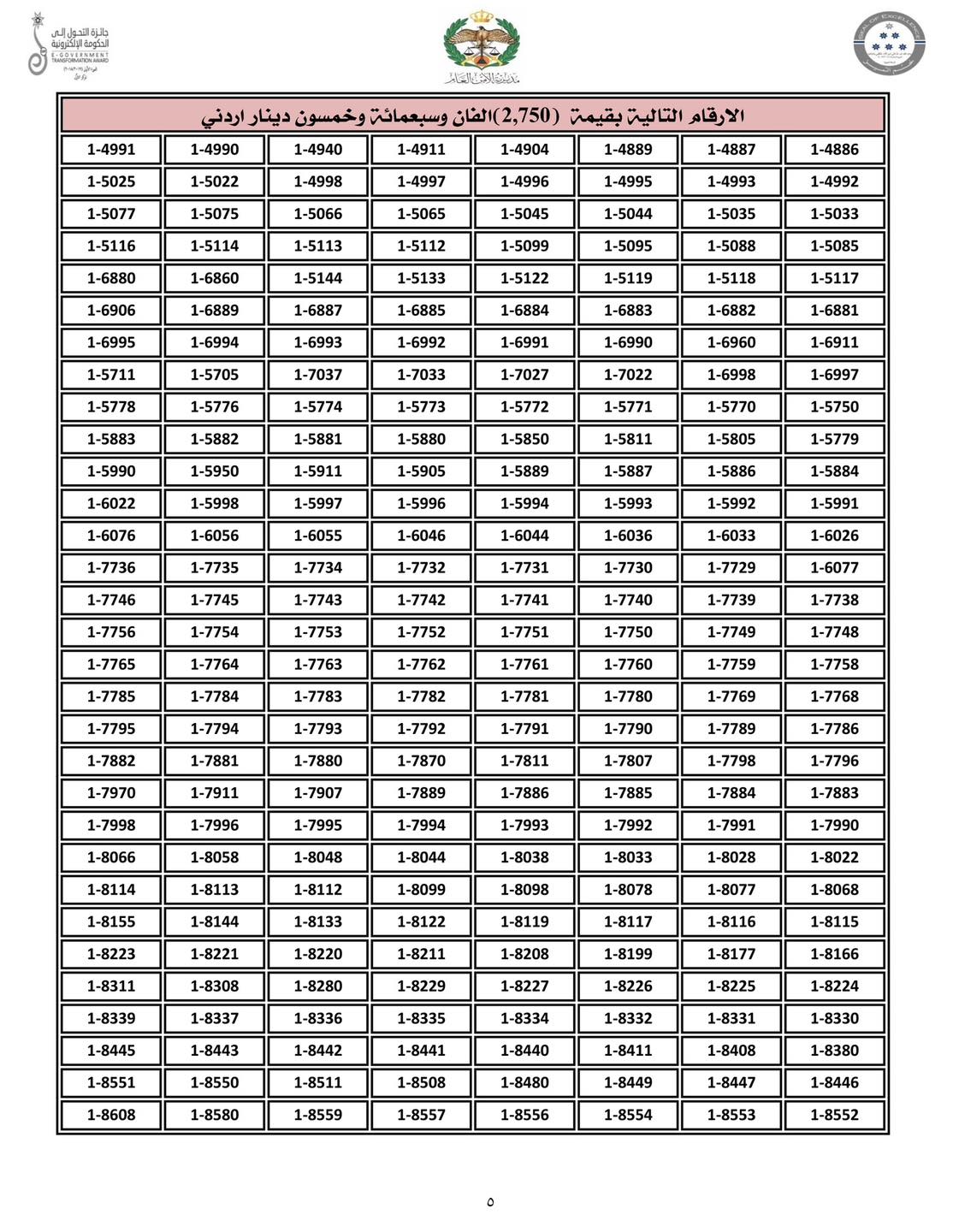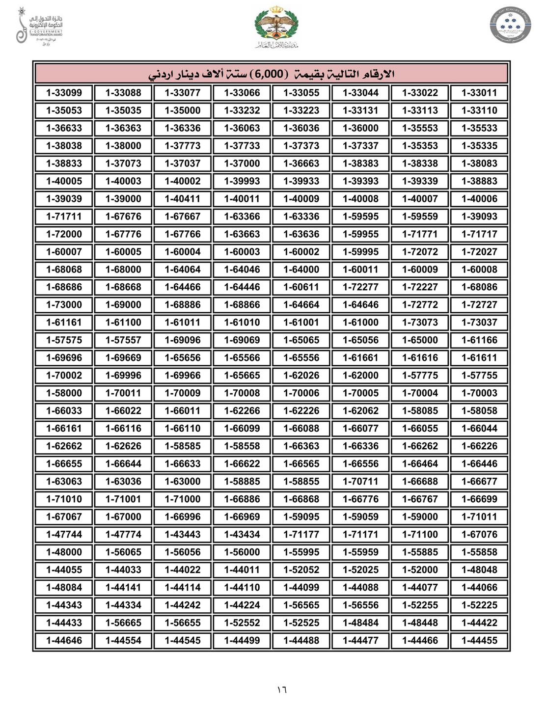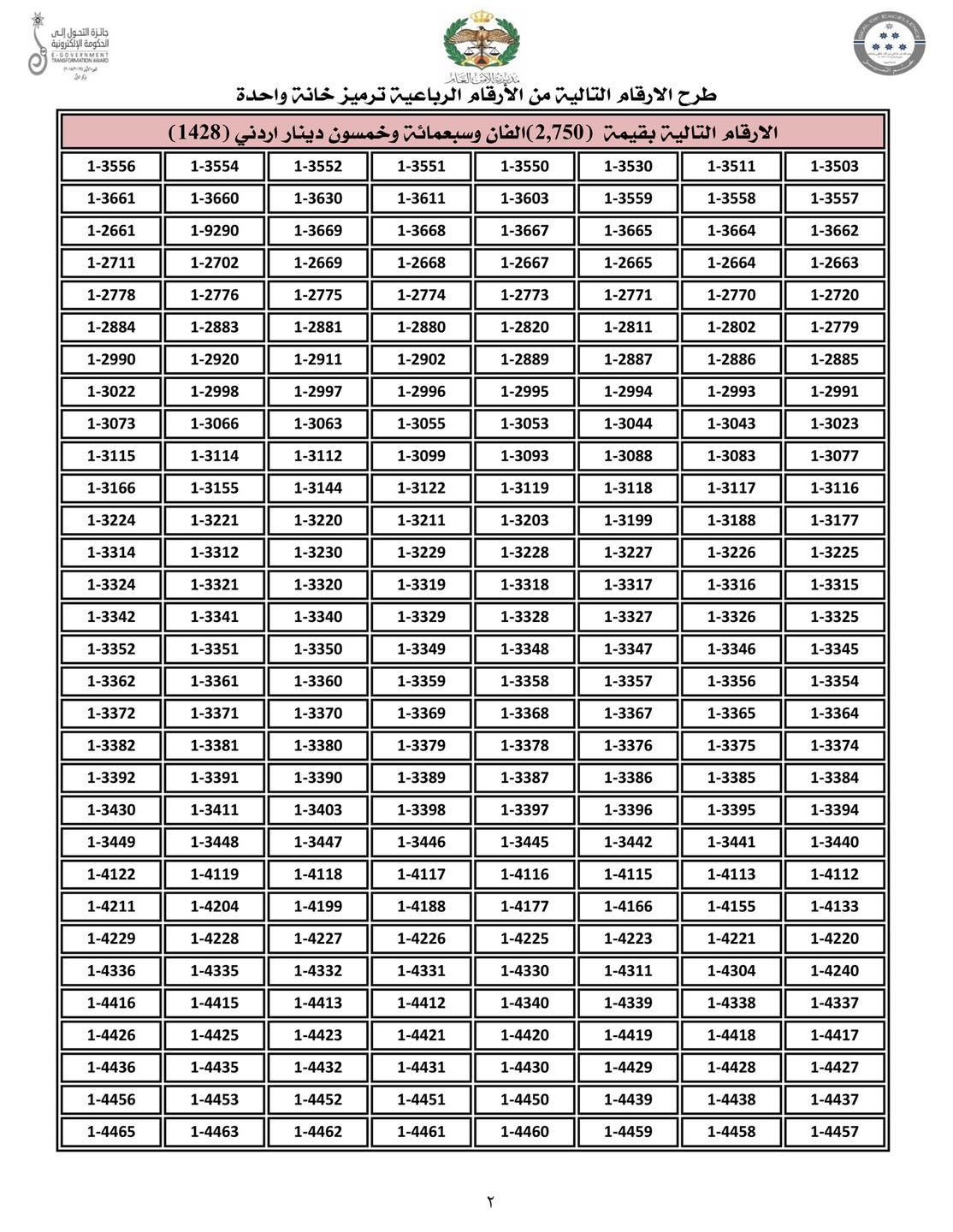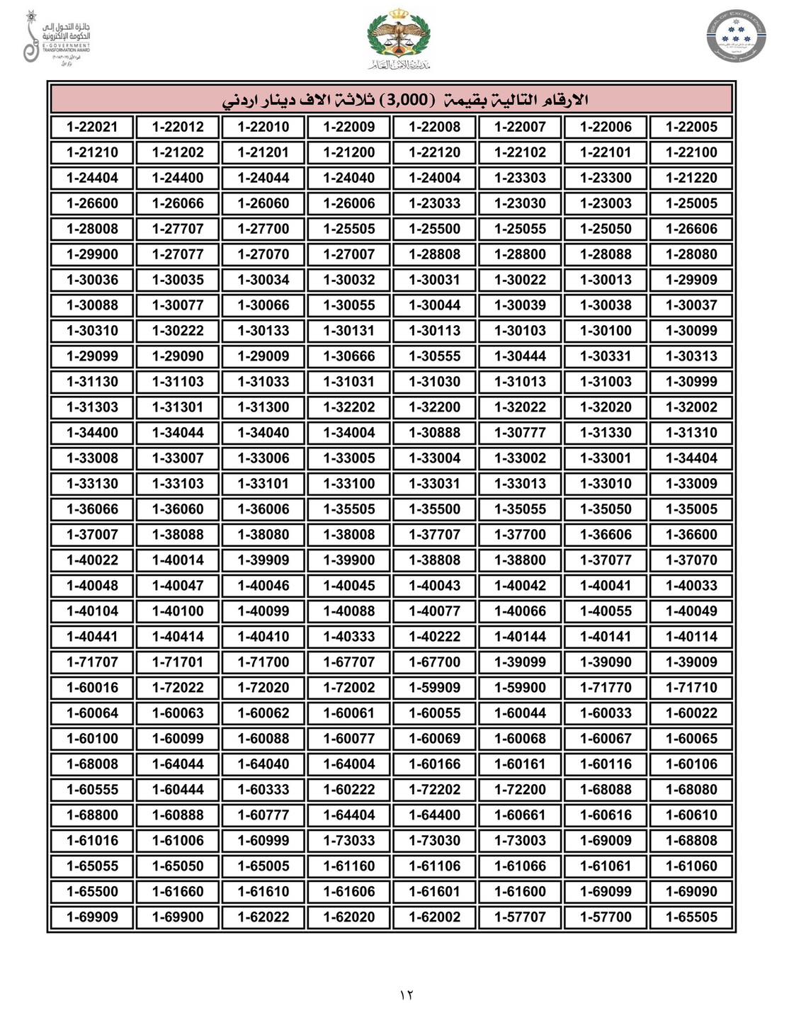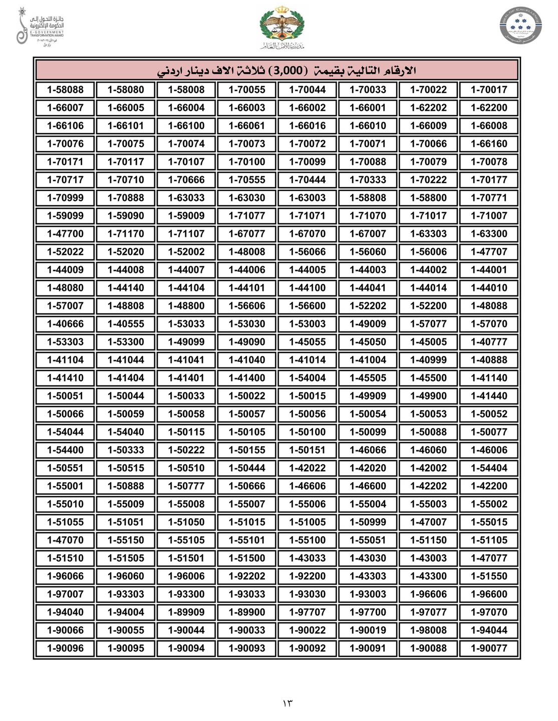 ** أرقام ثنائية وثلاثية ورباعية وخماسية من مختلف الترميزات، والتي كان مقرراً بيعها بالمزاد العلني بأسعار تبدأ من 25 ألف دينار