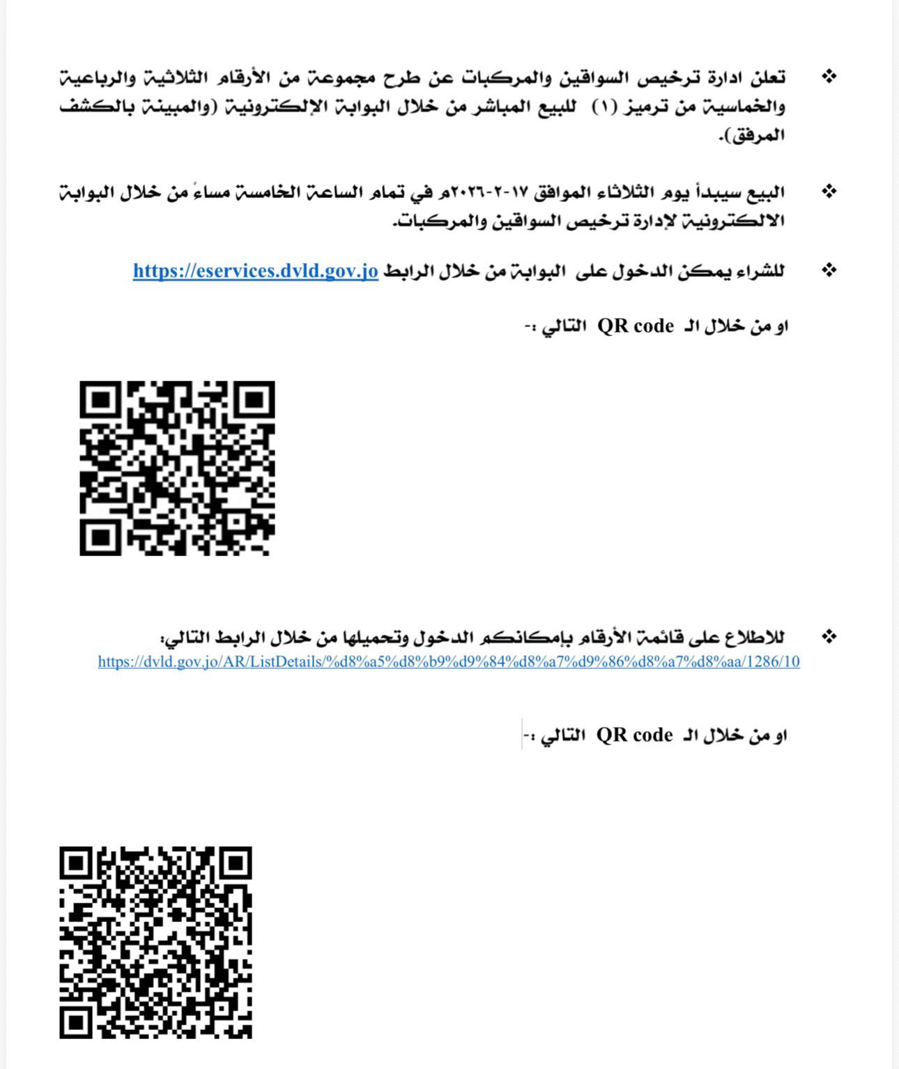 إدارة ترخيص السواقين والمركبات تطرح أرقاماً مميزة للبيع المباشر على بوابته