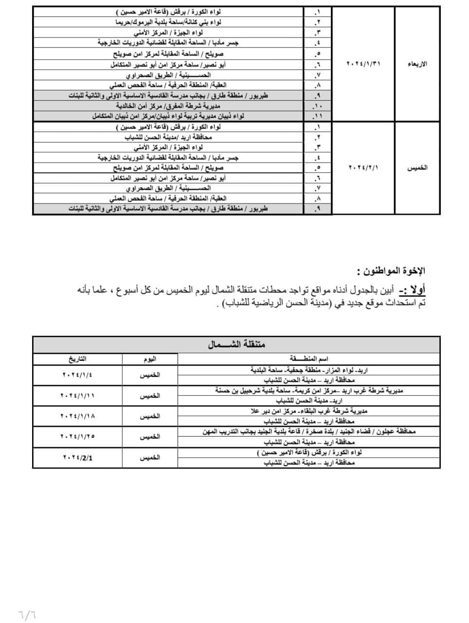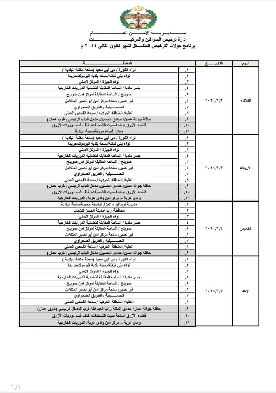 إدارة ترخيص السواقين والمركبات تعلن عن مواعيد العمل بجولات الترخيص المتنقل ضمن المبادرة الابتكارية ( بنوصلك ) خلال شهر كانون الثاني لعام 2024 في عدد من مناطق المملكة ، حيث ستكون ساعات الدوام للترخيص المتنقل من يوم الأحد ولغاية يوم الأربعاء من الساعة 8:00 صباحاً وحتى الساعة 2:00 ظهراً، ويوم الخميس من الساعة 8:00 صباحاً ولغاية الساعة 1:00 ظهراً.