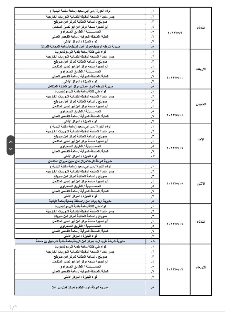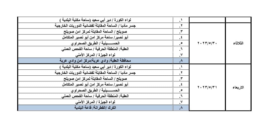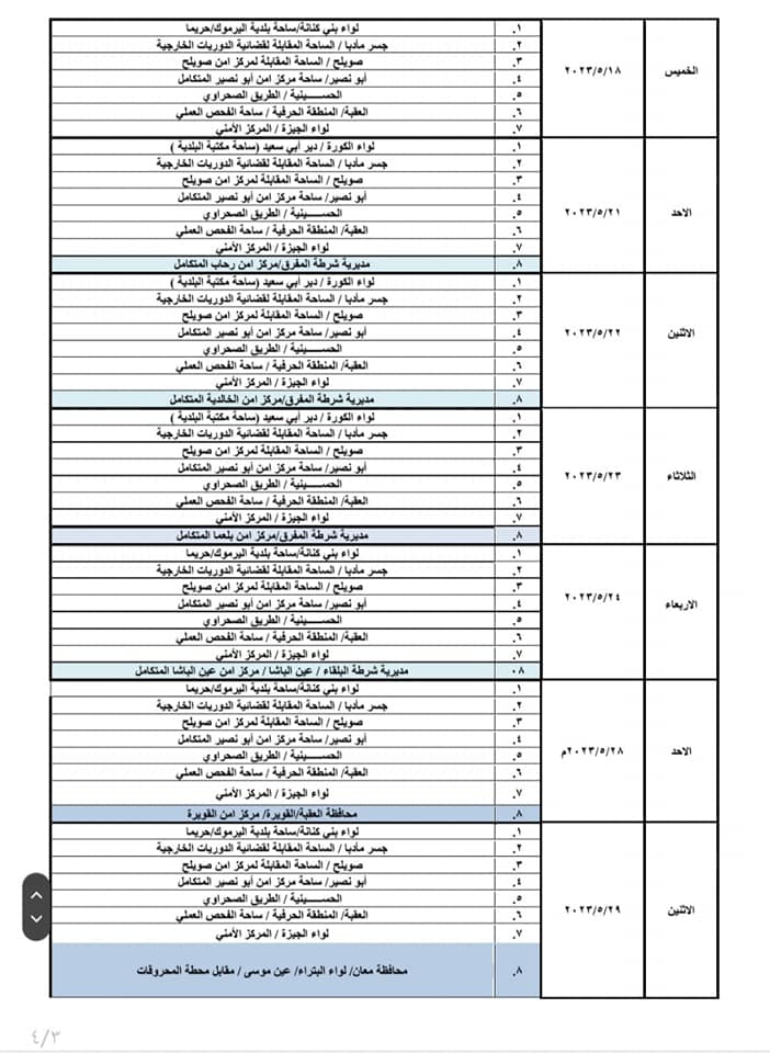 إدارة ترخيص السواقين والمركبات تعلن عن مواعيد العمل بجولات الترخيص المتنقل ضمن المبادرة الابتكارية ( بنوصلك ) خلال شهر أيار لعام 2023م في عدد من مناطق المملكة ، حيث ستكون ساعات الدوام للترخيص المتنقل من يوم الأحد ولغاية يوم الأربعاء من الساعة 8:00 صباحاً وحتى الساعة 2:00 ظهراً، ويوم الخميس من الساعة 8:00 صباحاً ولغاية الساعة 1:00 ظهراً.