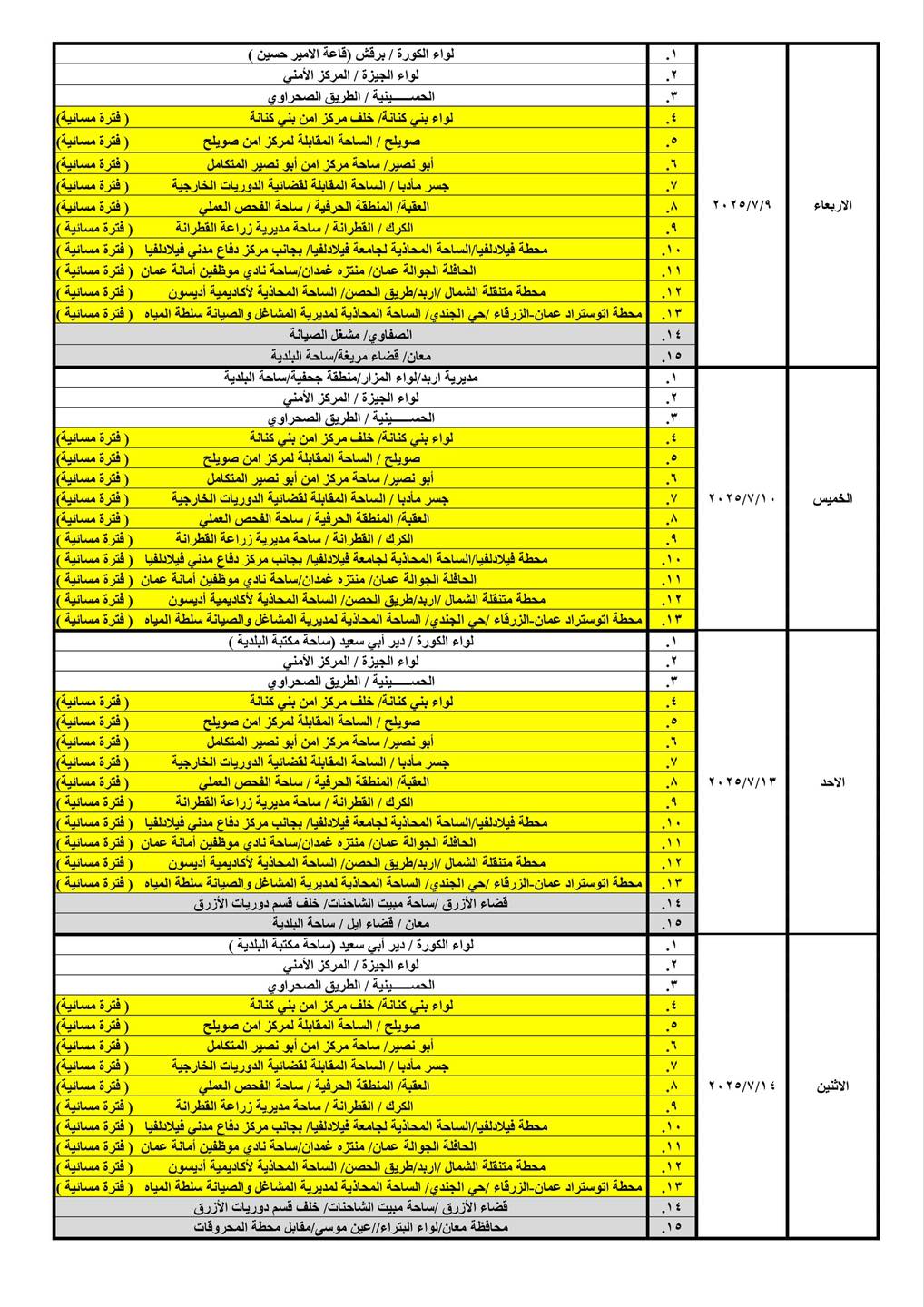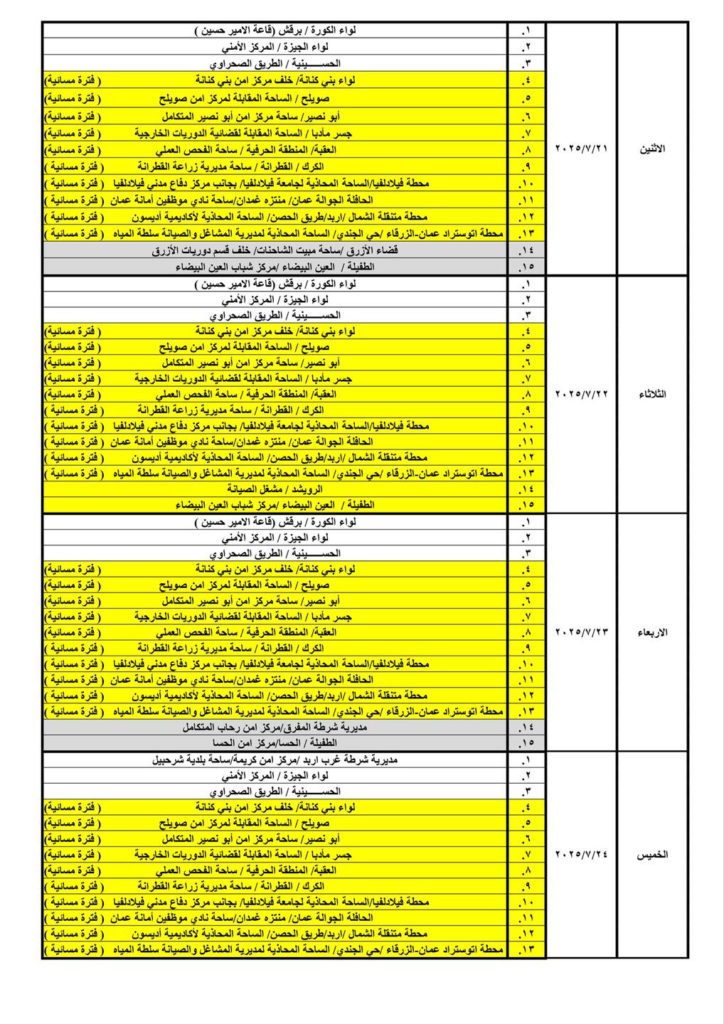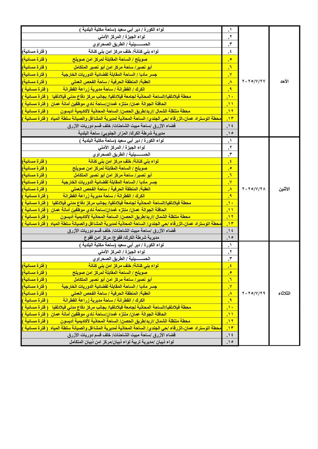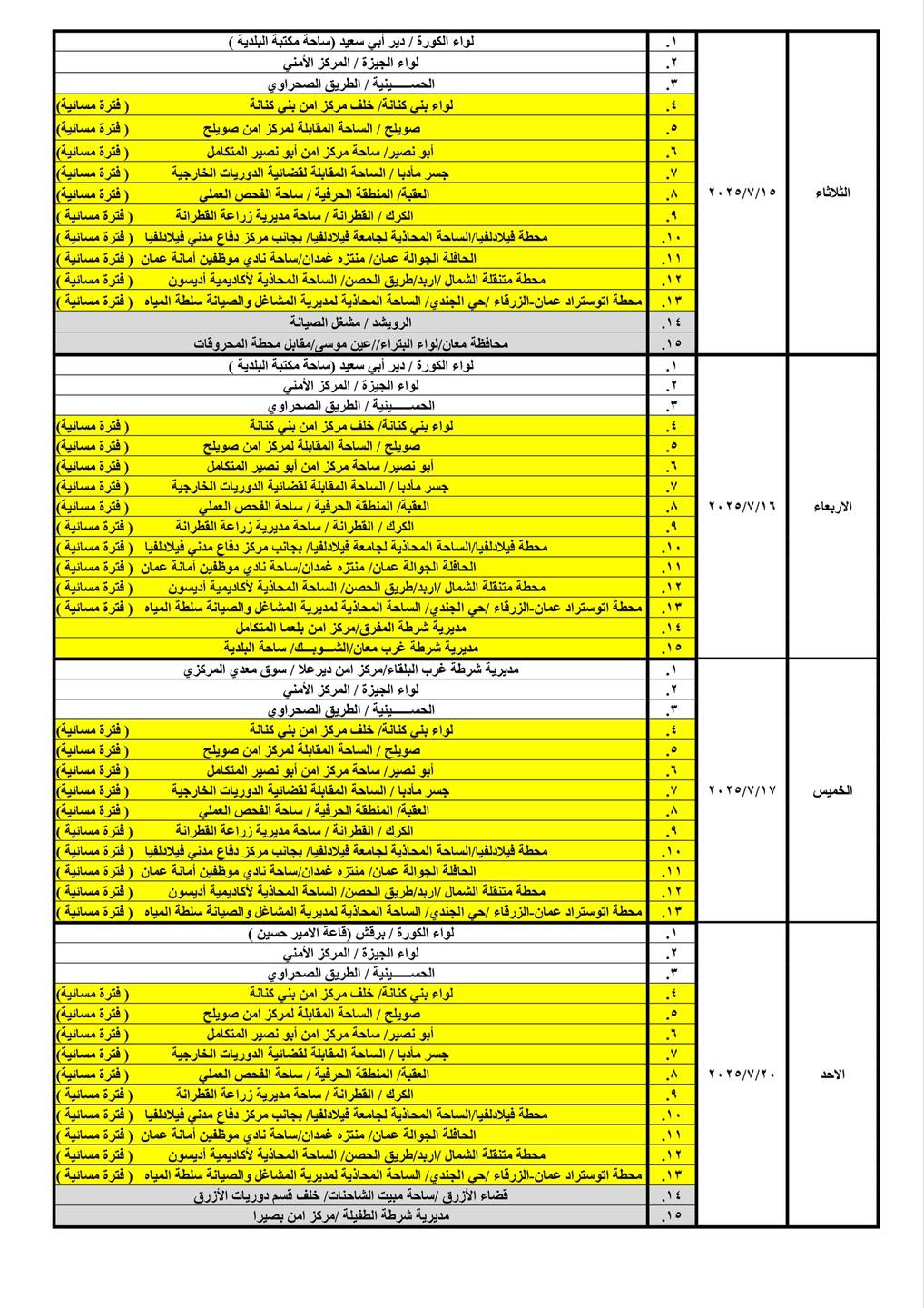 تعلن ادارة ترخيص السواقين والمركبات عن برنامج الترخيص المتنقل خلال شهر تموز لعام 2025م في عدد من مناطق المملكة حيث ستكون ساعات الدوام من يوم الأحد ولغاية يوم الأربعاء من الساعة (8:00) صباحاً وحتى الساعة (14:00) ظهراً، ويوم الخميس من الساعة (8:00) صباحاً ولغاية الساعة (13:00) ظهراً.
