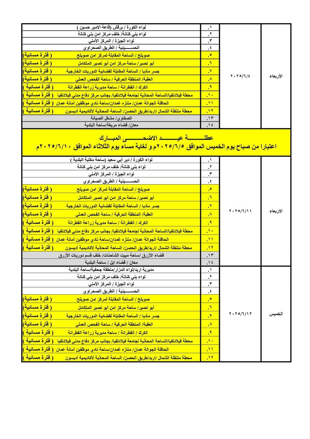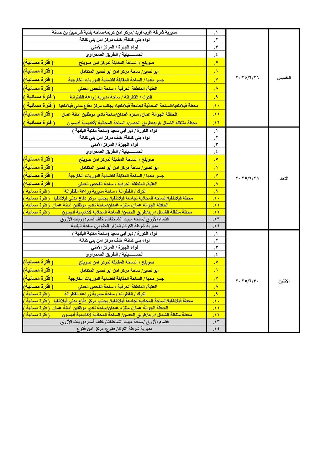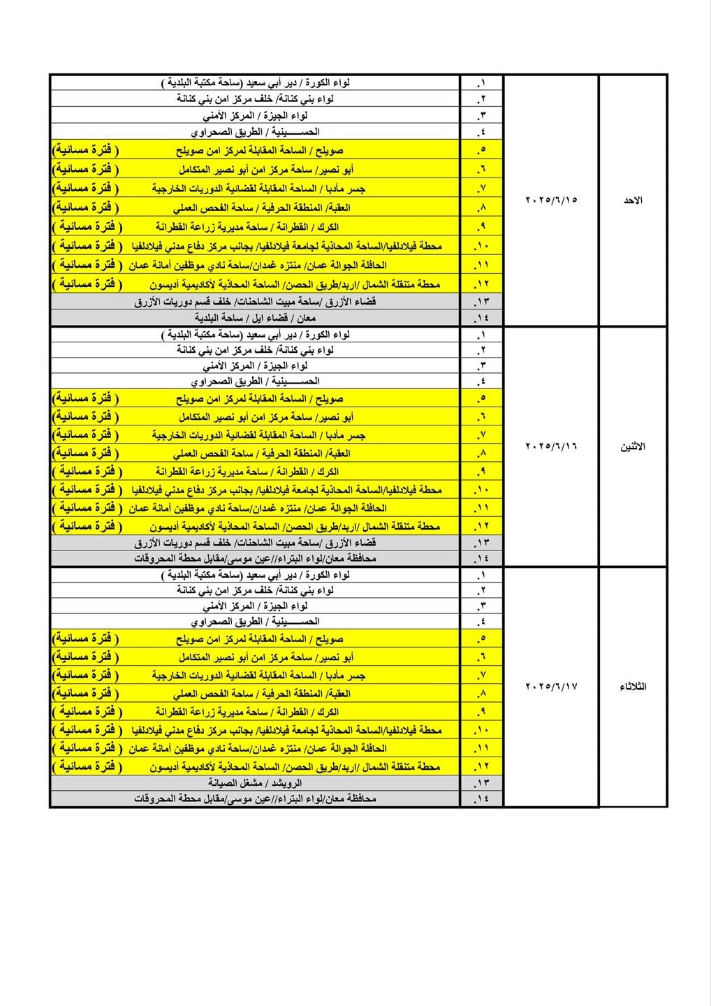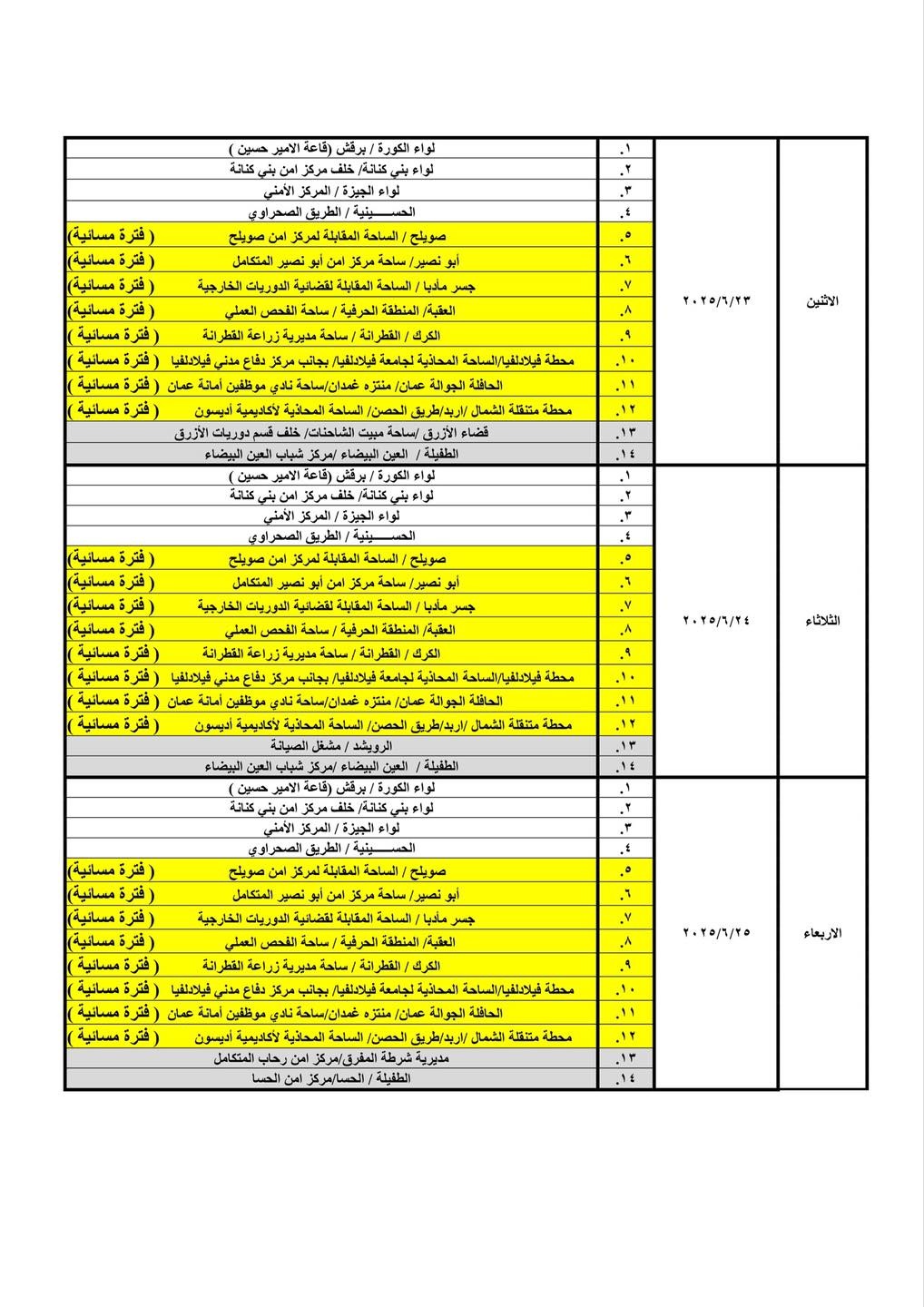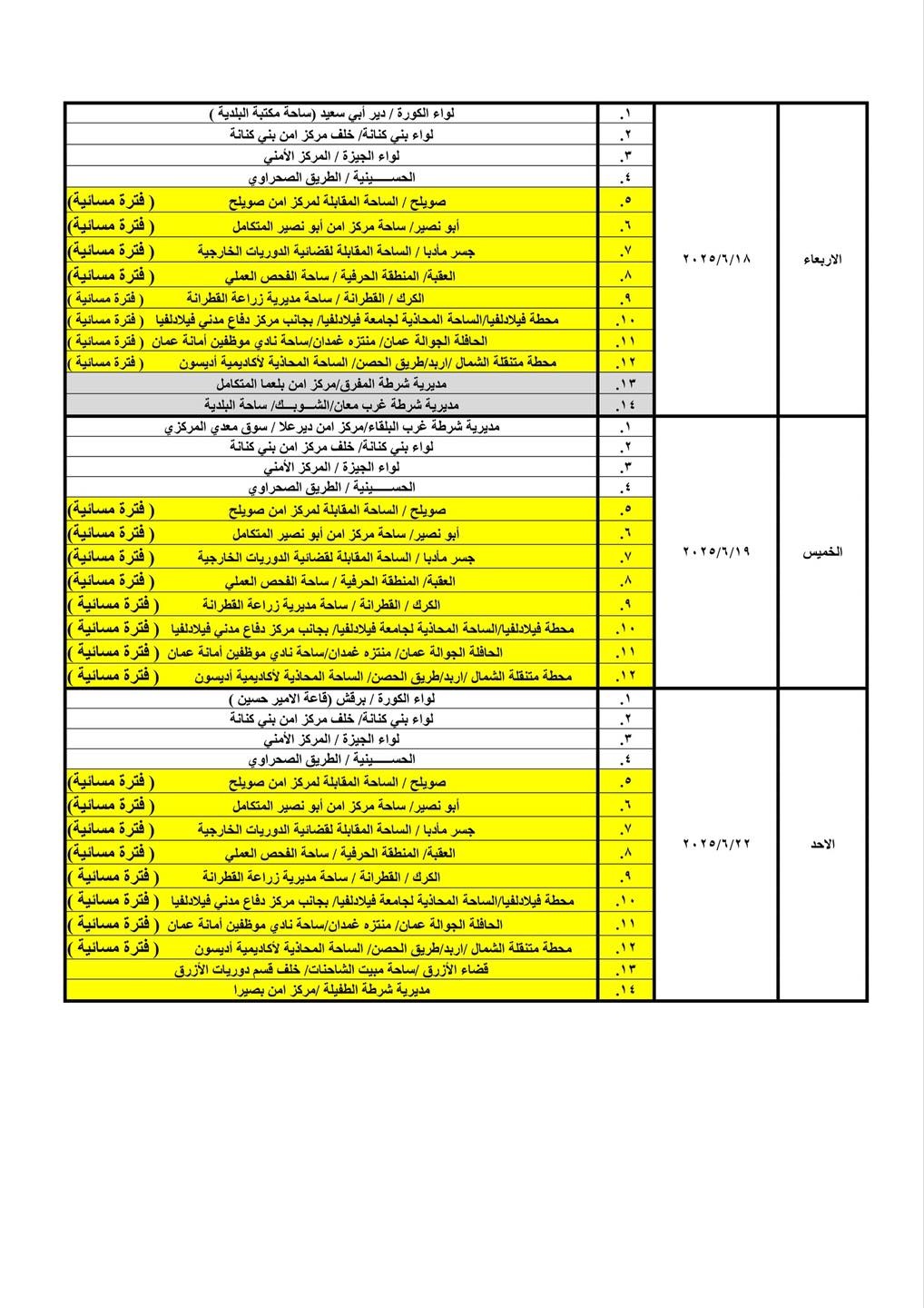 كما قررت الإدارة تعديل دوام أربع محطات ترخيص متنقلة من الفترة الصباحية إلى الفترة المسائية، ليصبح إجمالي عدد محطات الترخيص المسائية (8) محطات، وذلك اعتبارًا من يوم الأحد الموافق 2025/6/1l حيث سيكون الدوام من الساعة 3:00 مساءً ولغاية الساعة 8:00 مساءً.